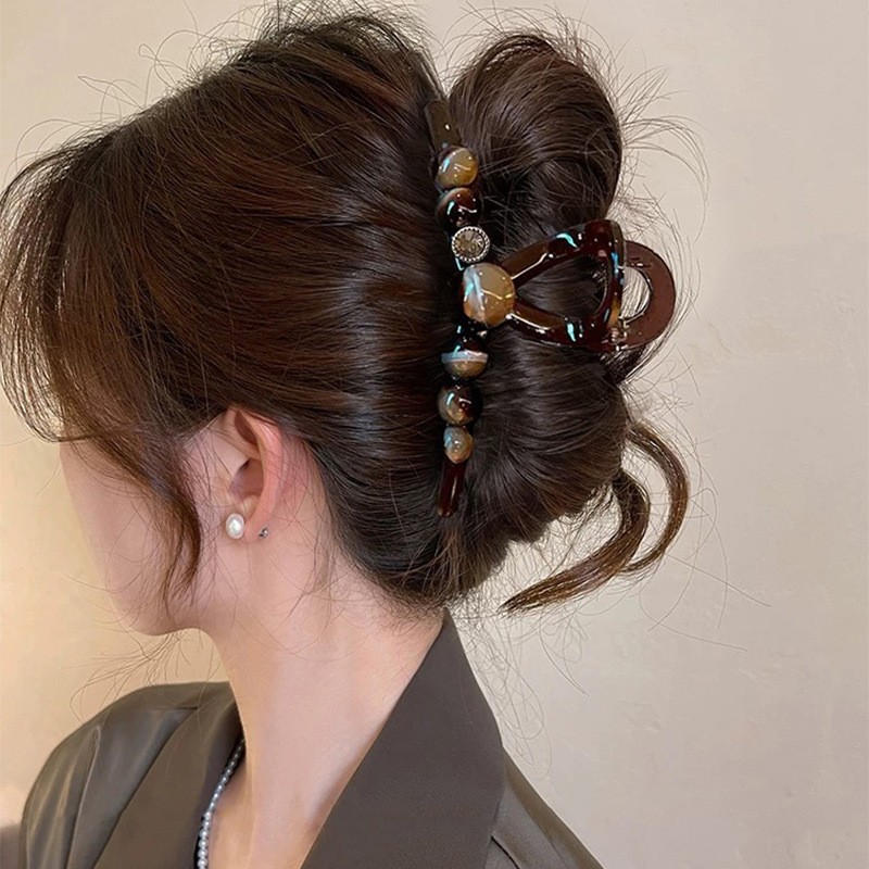 2025 새로운 우아한 앰버 비즈 잡아 클립 여성용 헤어핀 대형 헤어핀 머리 고급 상어 클립 헤드웨어스토어 가기