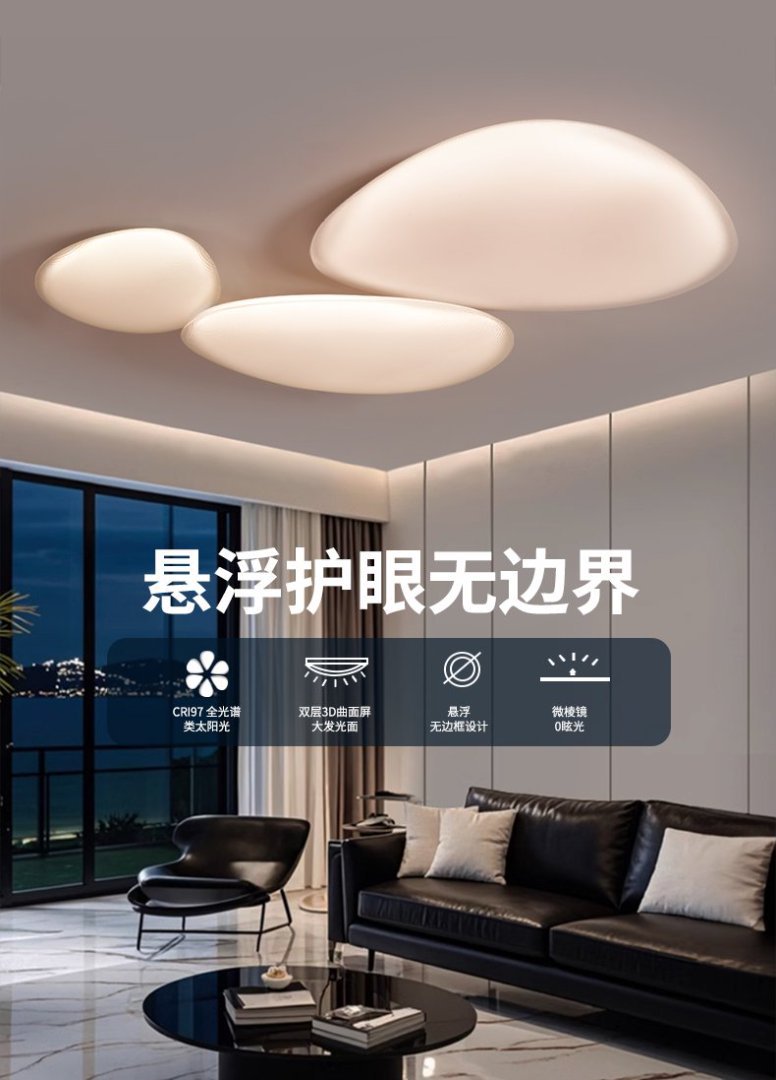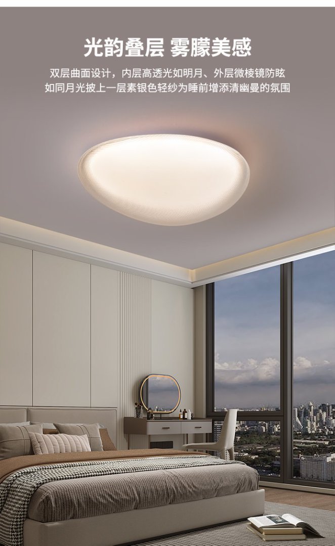 서스펜션 눈 보호 천장 램프 간단한 라운드 창조적 인 거실 간단한 현대 눈 보호 침실 크림 스타일 중산 램프