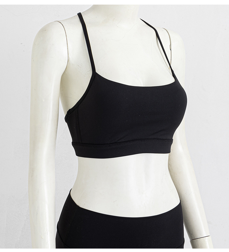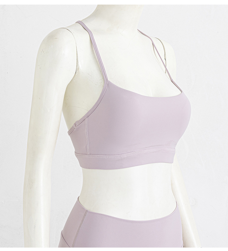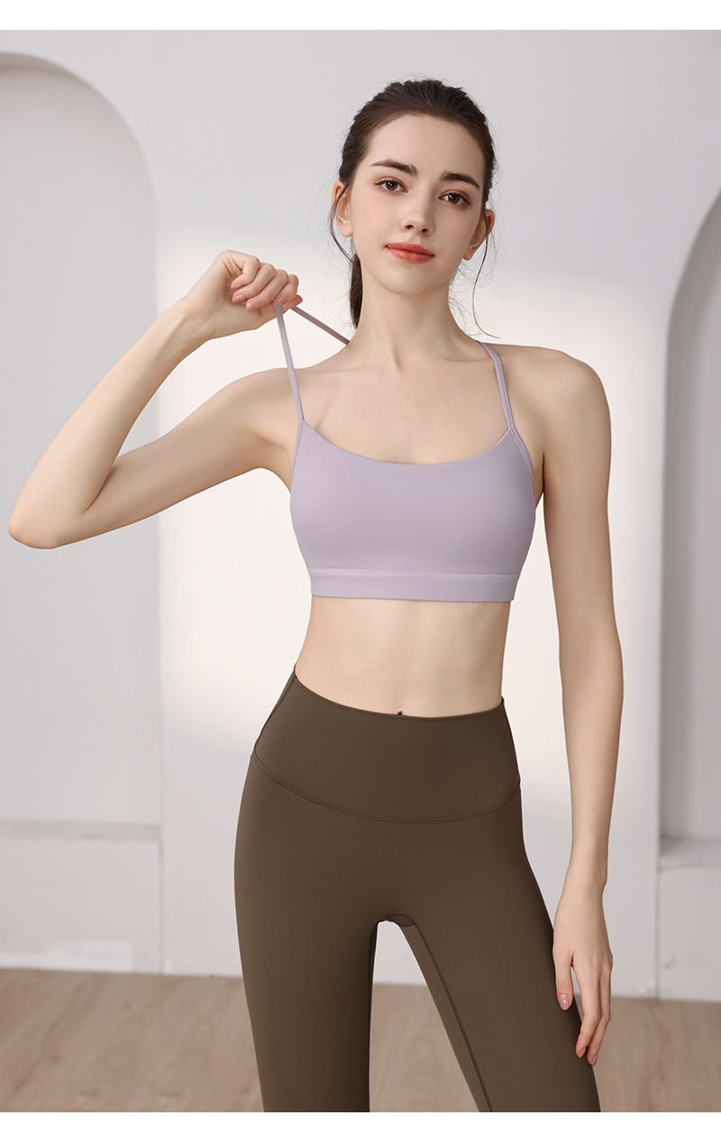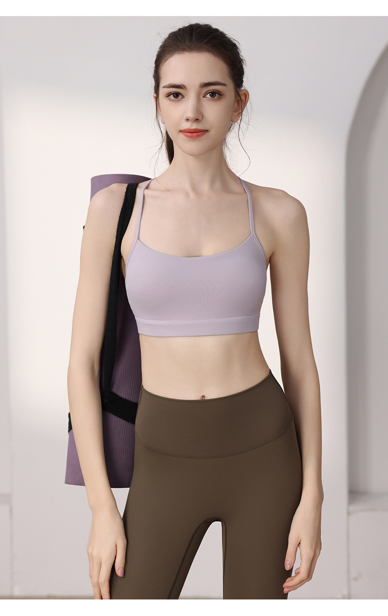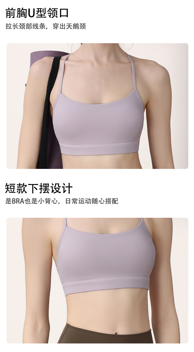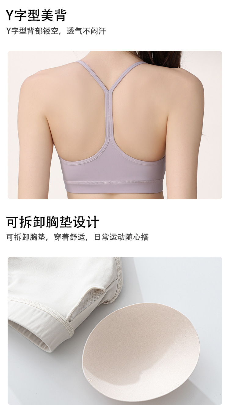 새로운 스포츠 속옷 여성용 브래지어 얇은 어깨 끈 분리 가능한 가슴 패드 Y 자형 등 충격 흡수 피트니스 요가 브래지어