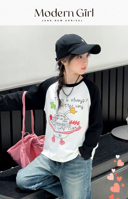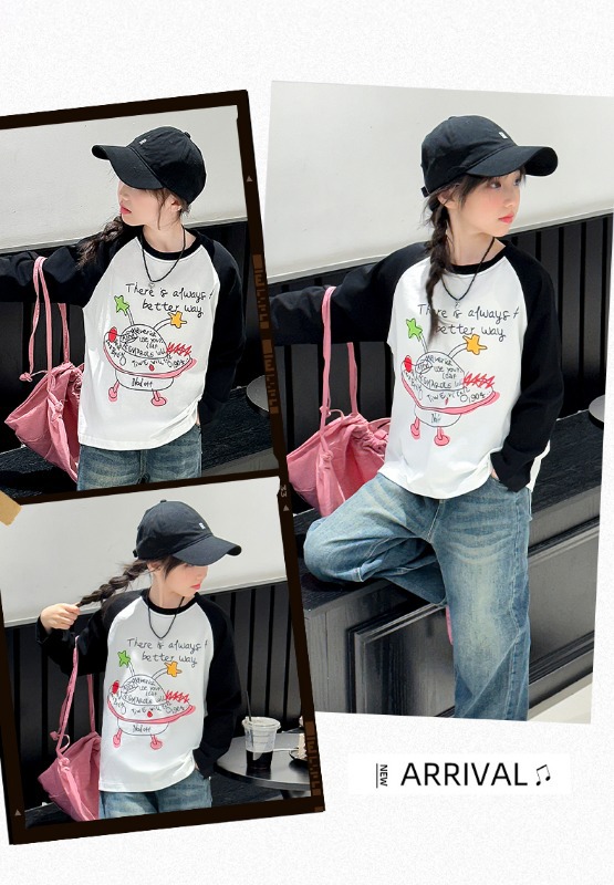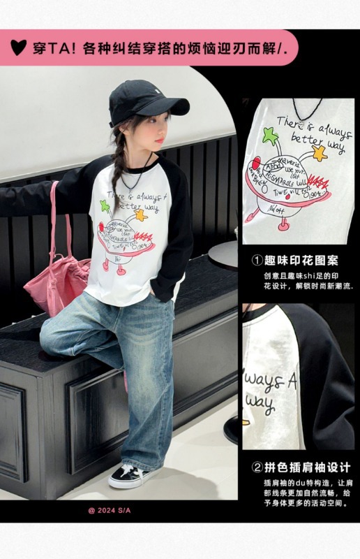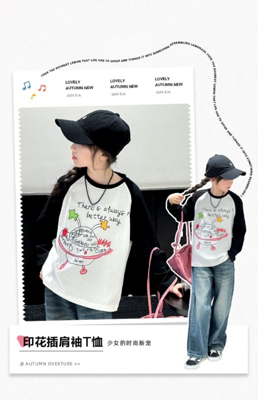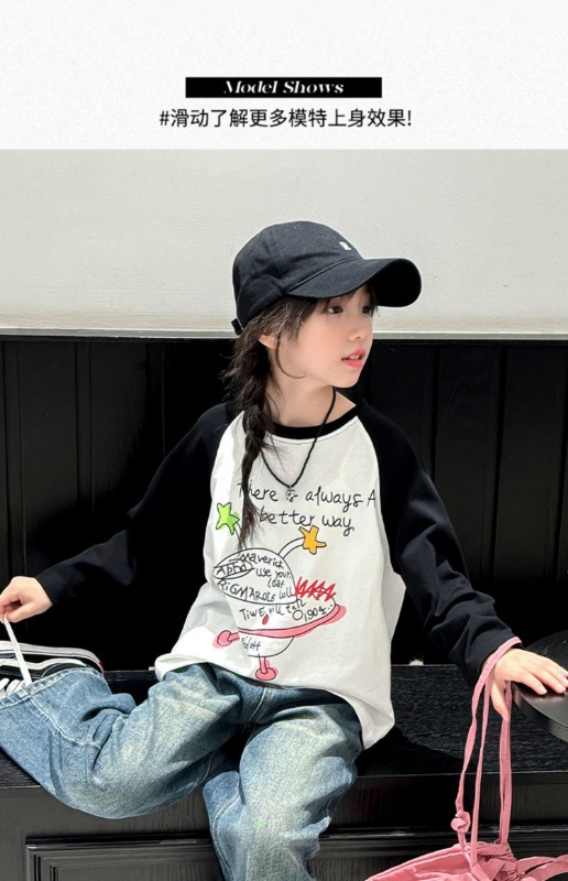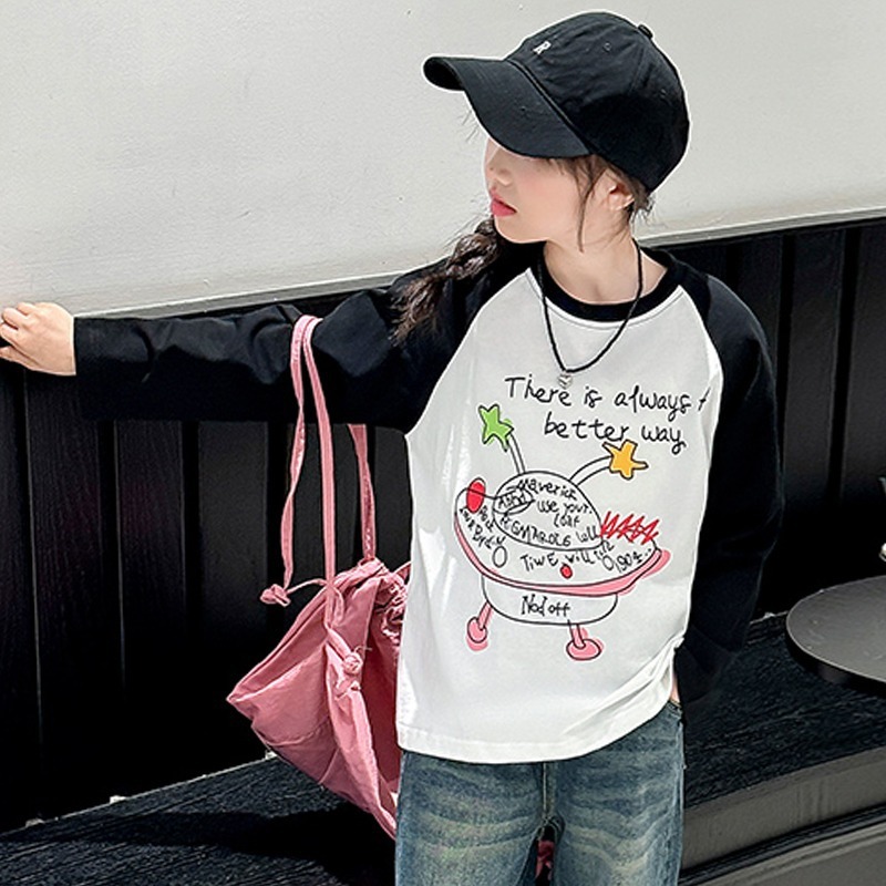 소녀 긴 소매 티셔츠 봄과 가을 캐주얼 소녀 한국 느슨한 순수 면베이스 셔츠 큰 어린이 봄 만화 탑스토어 가기