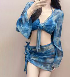 새로운 여성 스플릿 비키니 4 피스 세트 긴 소매 선 스크린 타이 염색 컬러 섹시한 온천 휴가 수영복 여성 도매스토어 가기