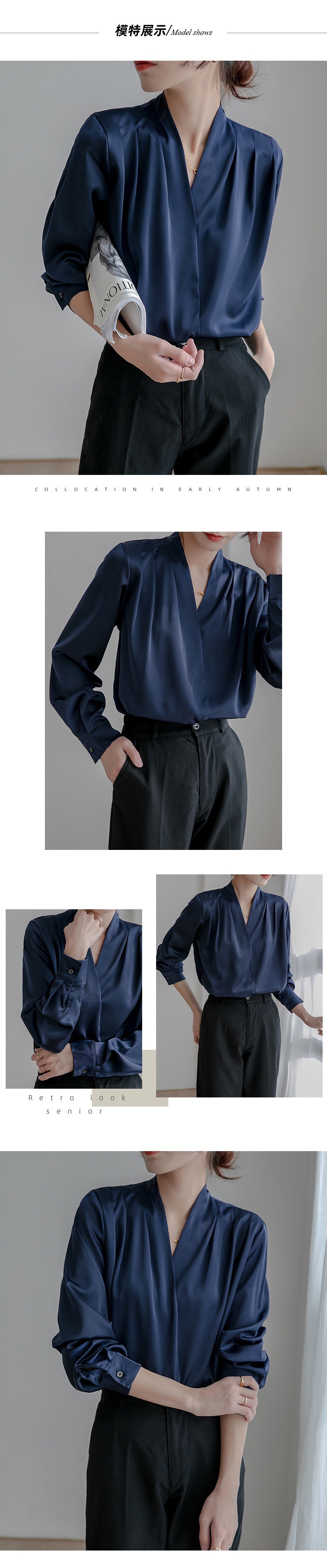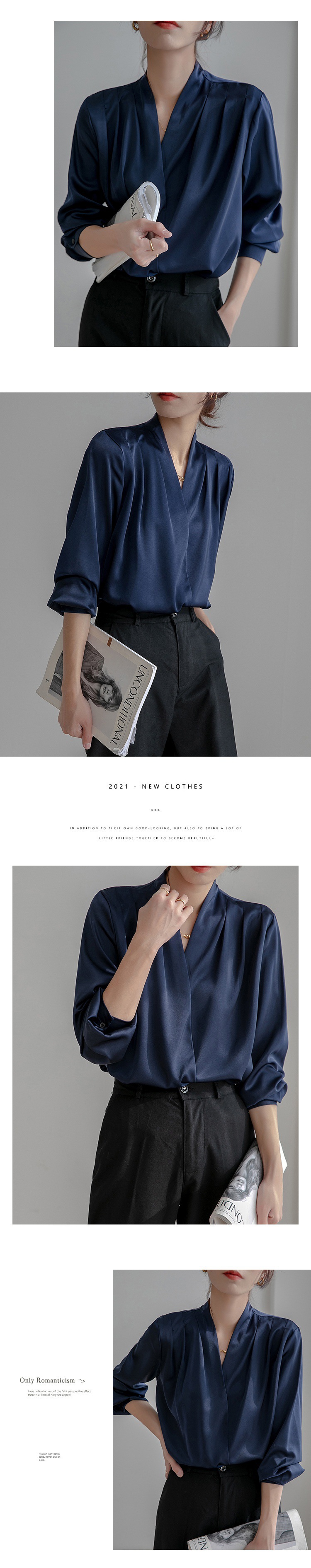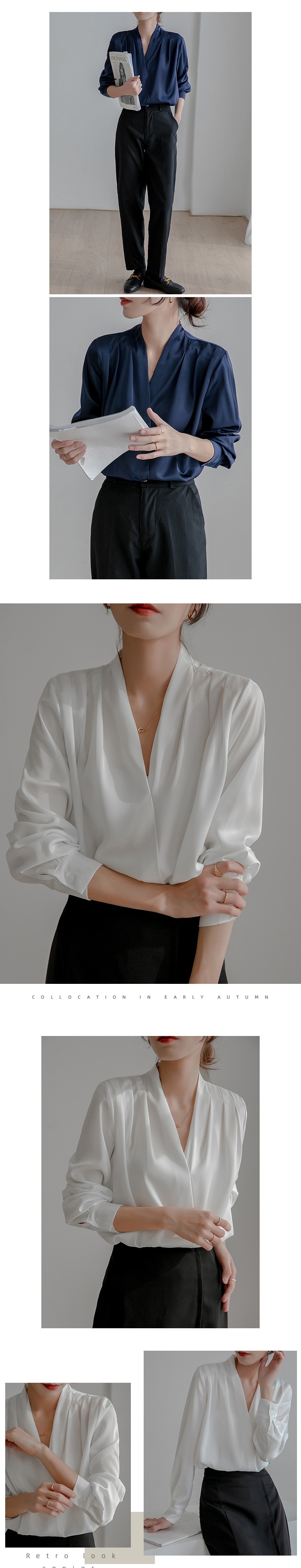 리얼 샷 2025 봄 화이트 셔츠 여성용 긴 소매 프랑스 스타일 디자인 레트로 실크 탑 전문 새틴 셔츠스토어 가기