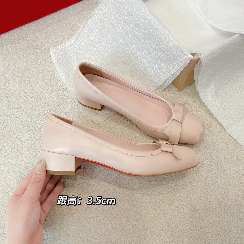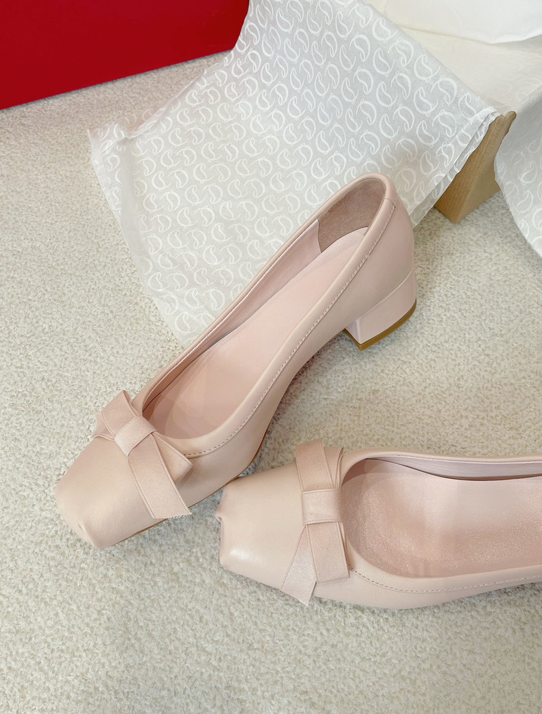 드래곤 하트 스타일 활 발레 신발 새 벗은 핑크 하이힐 메리 제인 신발 여성 두꺼운 힐 미드 힐 싱글 레이어 신발