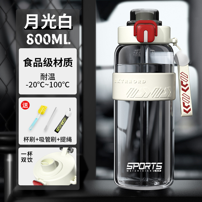 • ❤수입 트라이탄 [더블드링크/내열] 문라이트 화이트 800ML (무료 실리콘 커버 + 클리닝 세트)