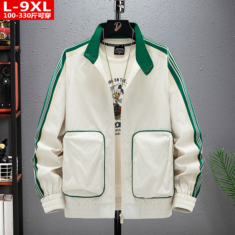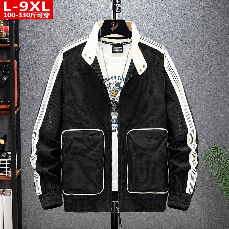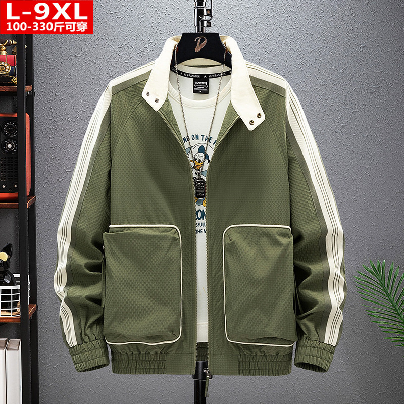 봄과 가을 트렌디 한 홍콩 스타일 남성 잘 생긴 패치 포켓 칼라 재킷 통통한 남성 플러스 플러스 사이즈 느슨한 캐주얼 재킷