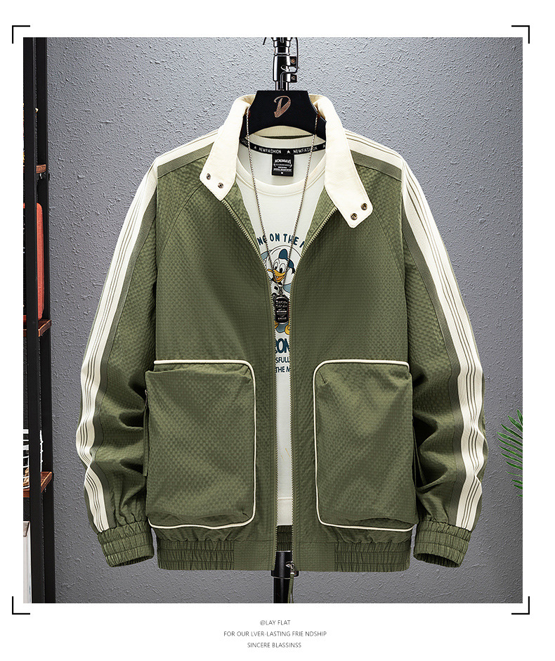 봄과 가을 트렌디 한 홍콩 스타일 남성 잘 생긴 패치 포켓 칼라 재킷 통통한 남성 플러스 플러스 사이즈 느슨한 캐주얼 재킷스토어 가기