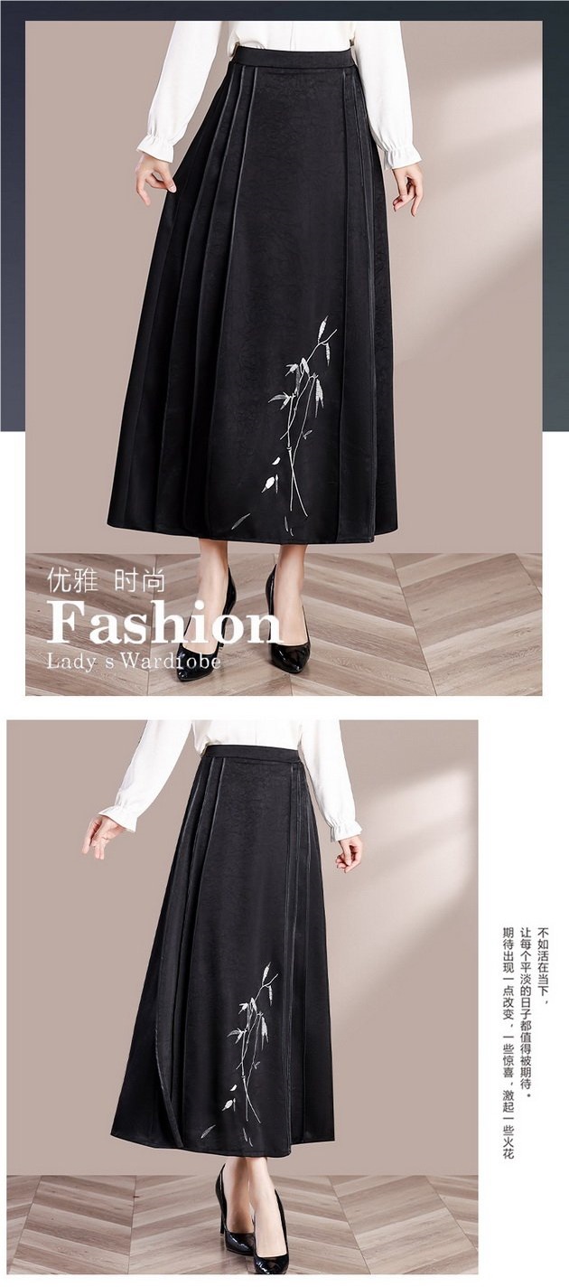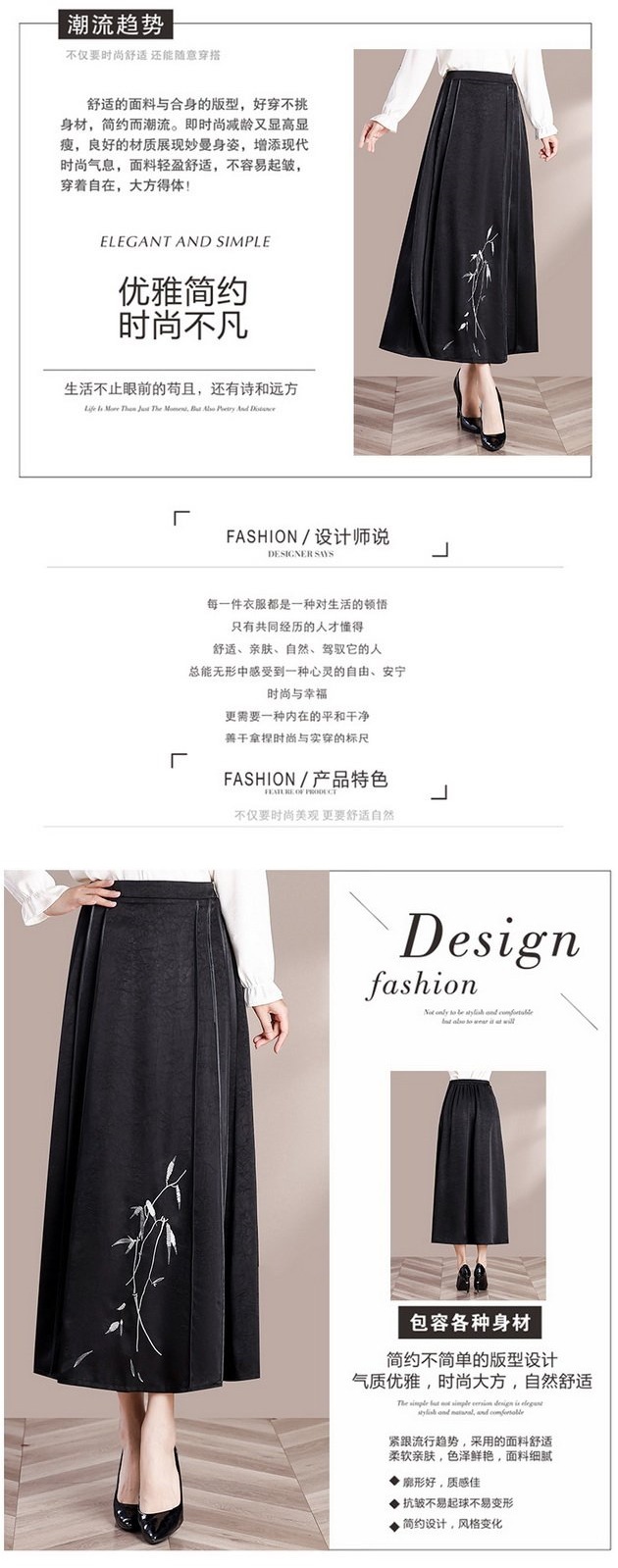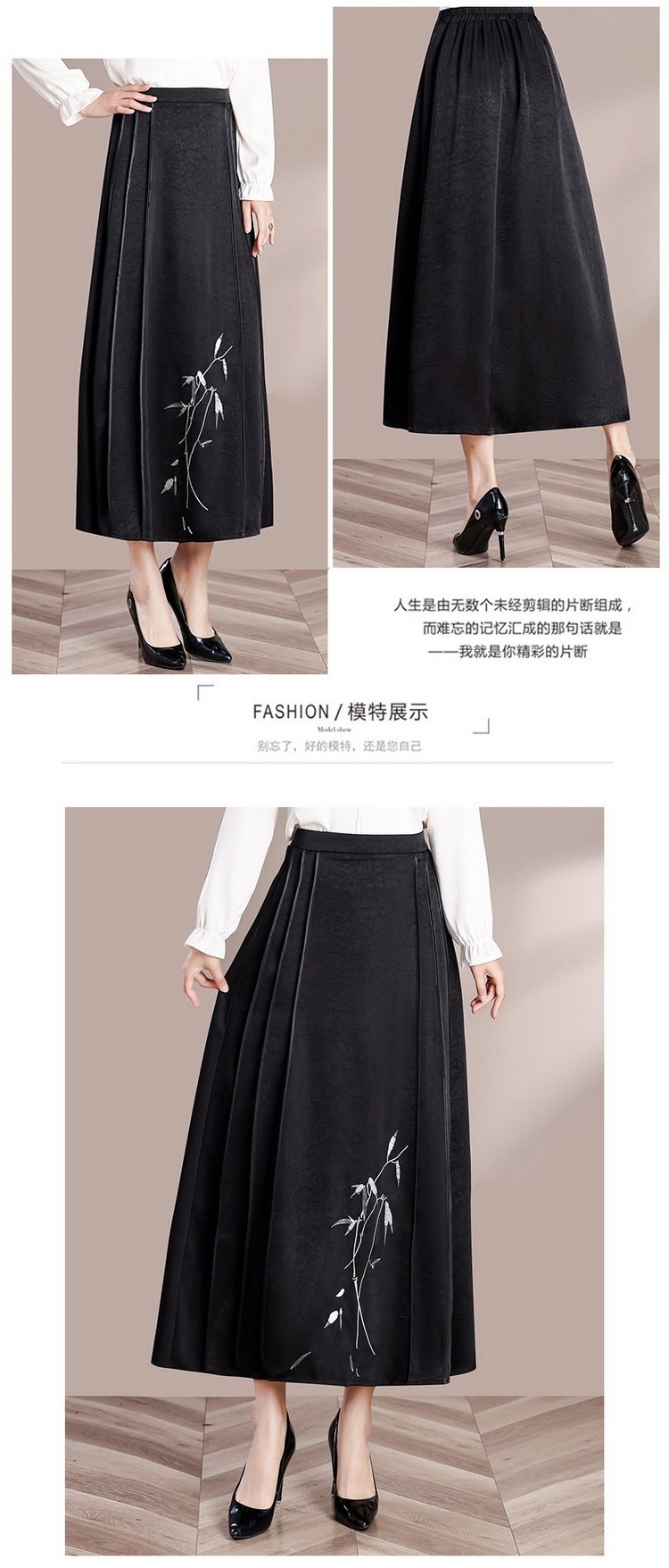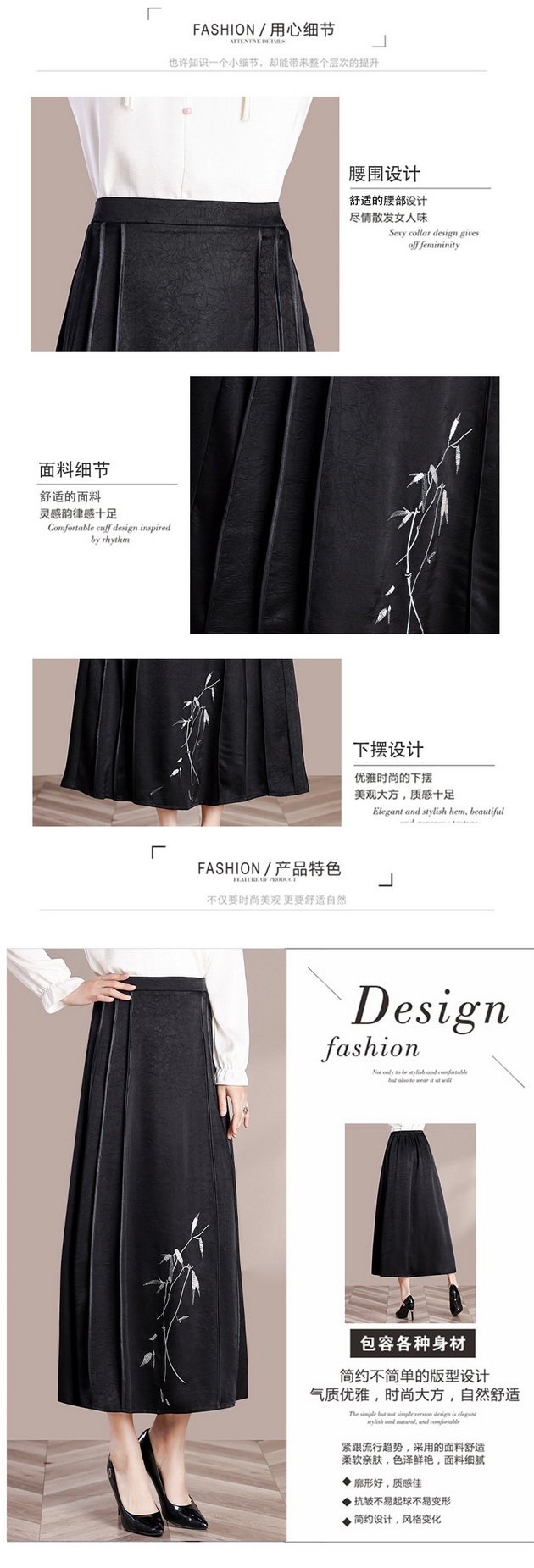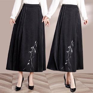 Elasto 허리 자수 슬림 룩 중국 스타일 국가 스타일 개선 된 한푸 블랙 스커트 여성의 여름 중간 길이 스커트스토어 가기