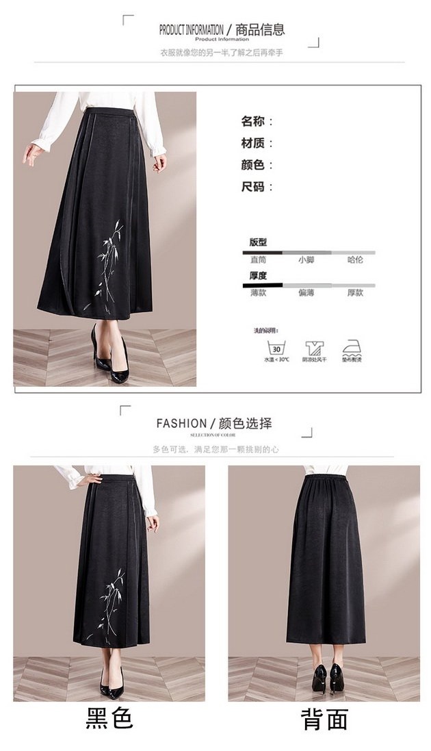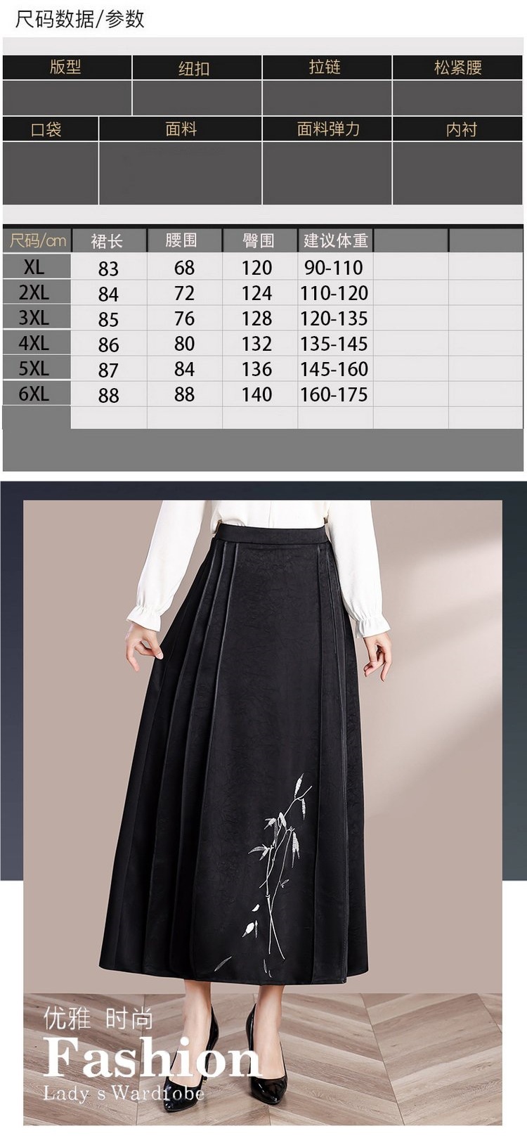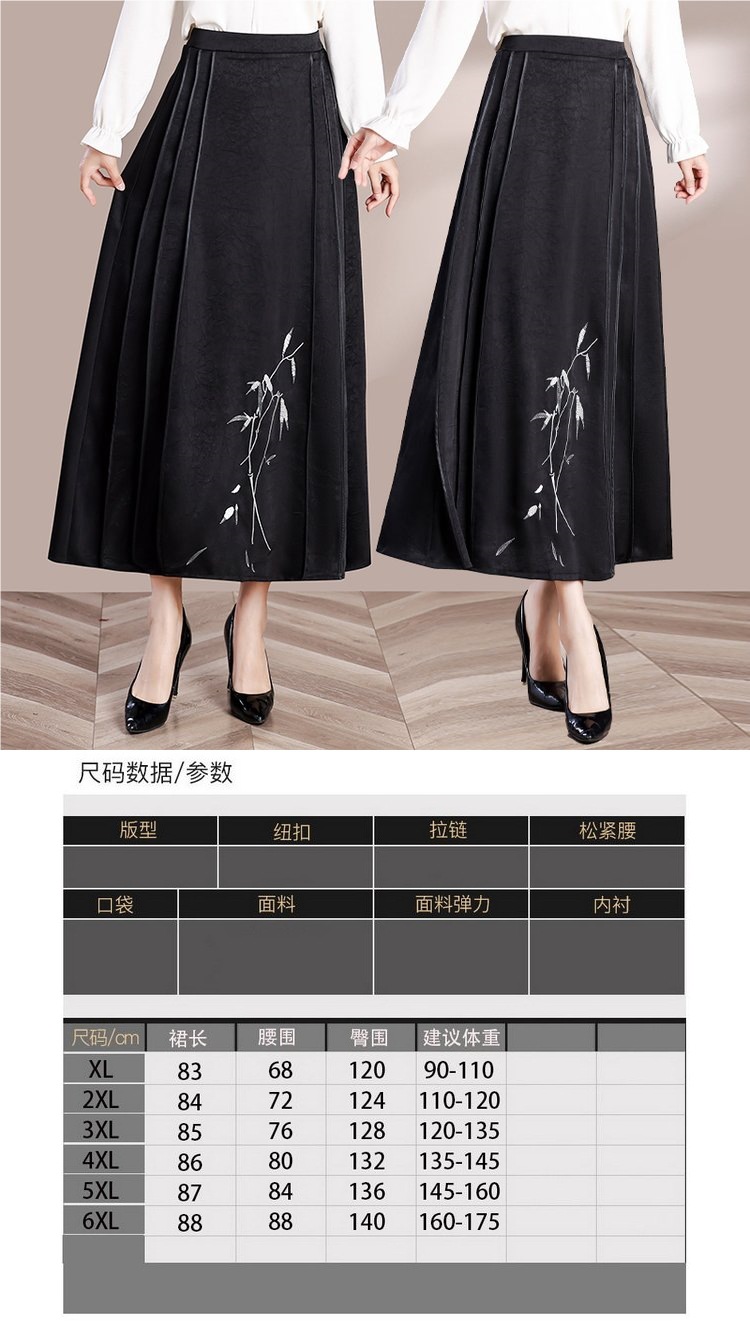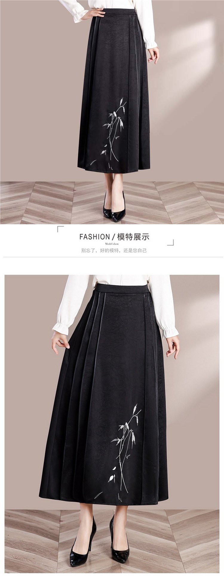 Elasto 허리 자수 슬림 룩 중국 스타일 국가 스타일 개선 된 한푸 블랙 스커트 여성의 여름 중간 길이 스커트스토어 가기