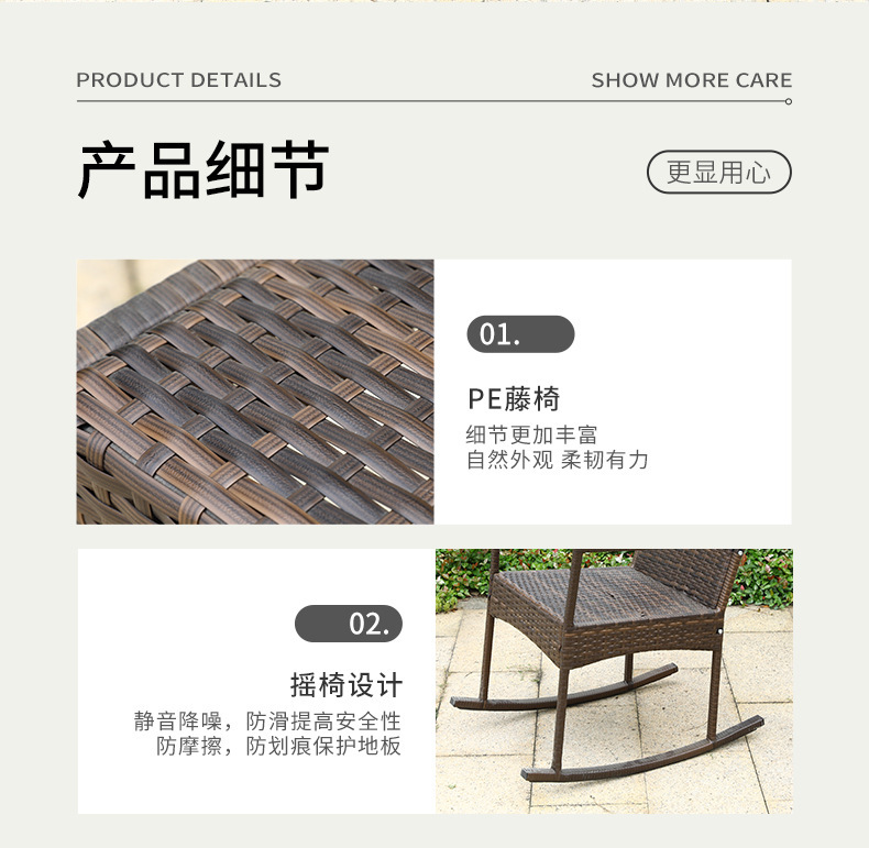 코트야드 야외 등나무 의자 새로운 중국 발코니 카페 리클라이너 남성과 여성의 단일 레저 흔들 의자 도매스토어 가기