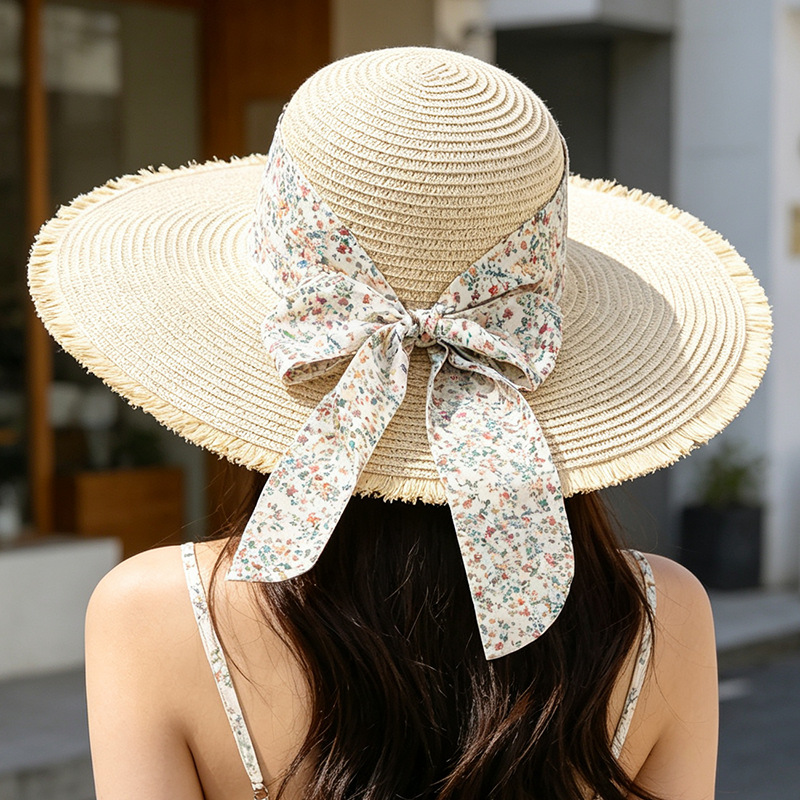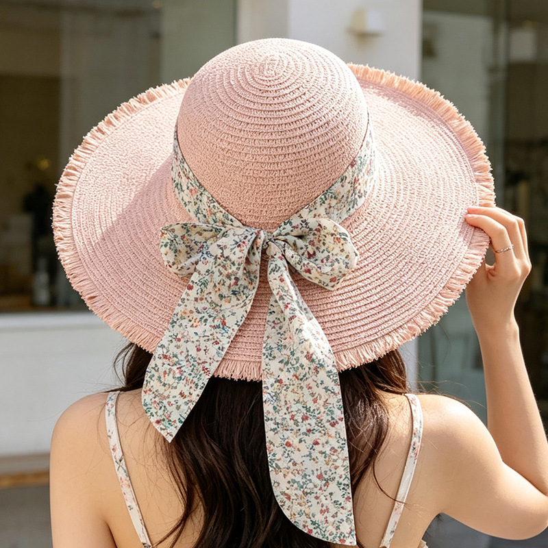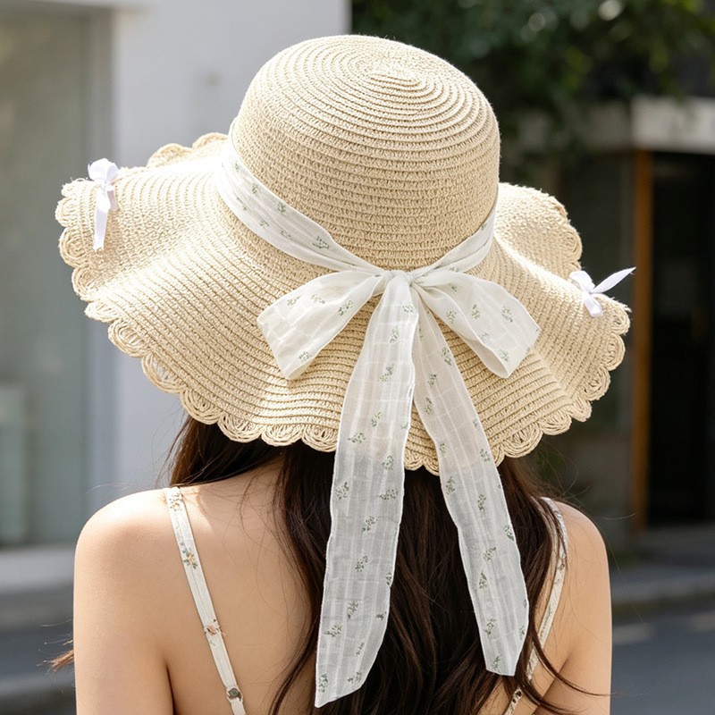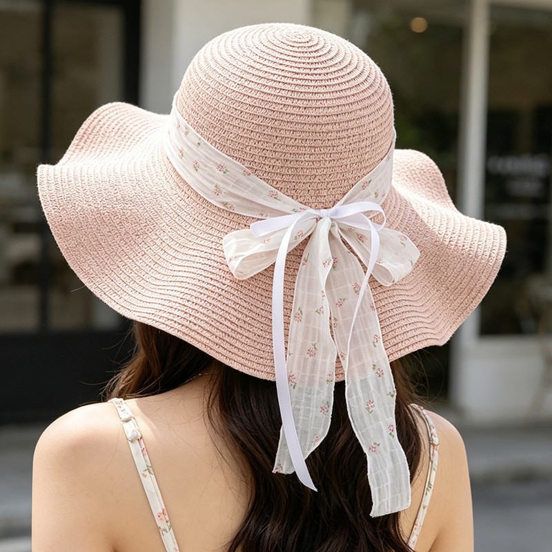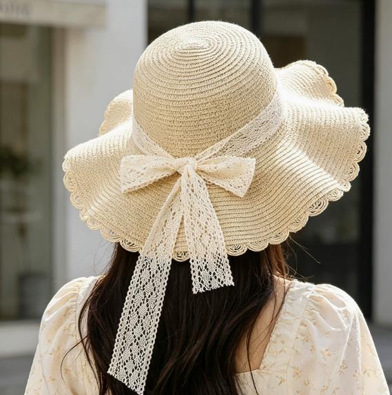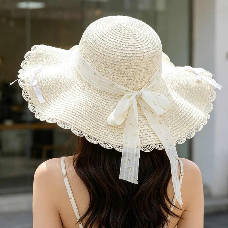 새로운 달콤한 큰 활 햇살 밀짚 모자 여성 패션 우아한 큰 브림 태양 모자 야외 태양 모자스토어 가기