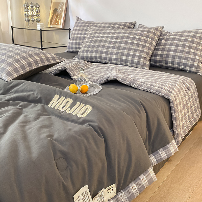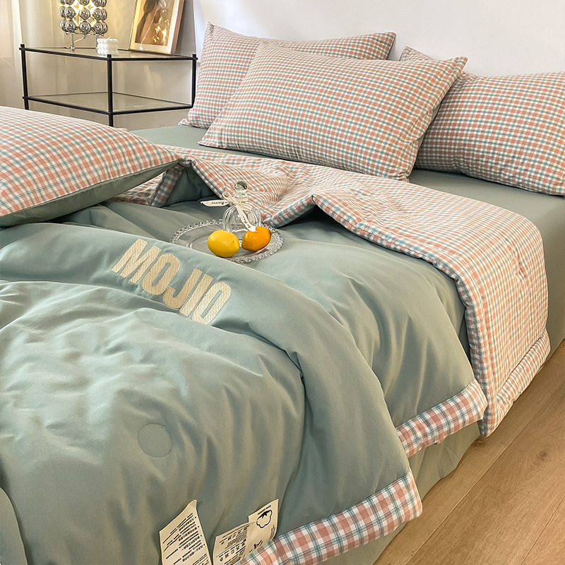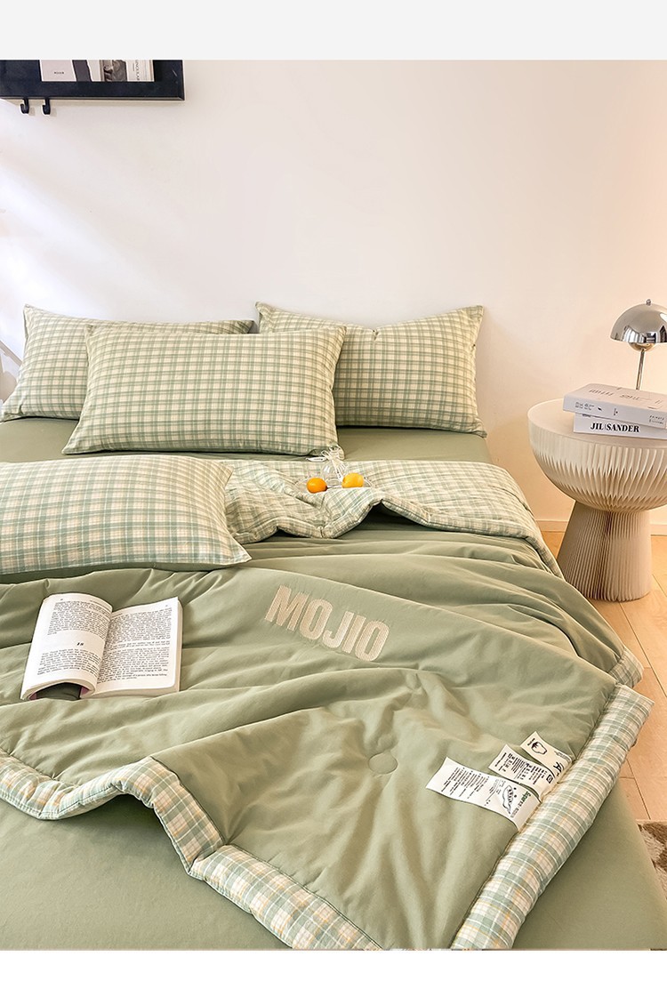 면화 여름 이불 4 조각 에어컨 이불 여름 싱글 더블 얇은 이불 여름 봄과 가을 기계 세탁 가능한 여름 이불