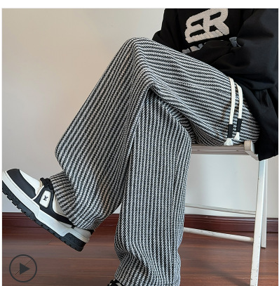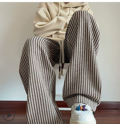 다크 브라운 바지 남자 봄과 가을 미국 스타일 레트로 스트라이프 스포츠 바지 스트레이트-다리 느슨한 무거운 다리 바지
