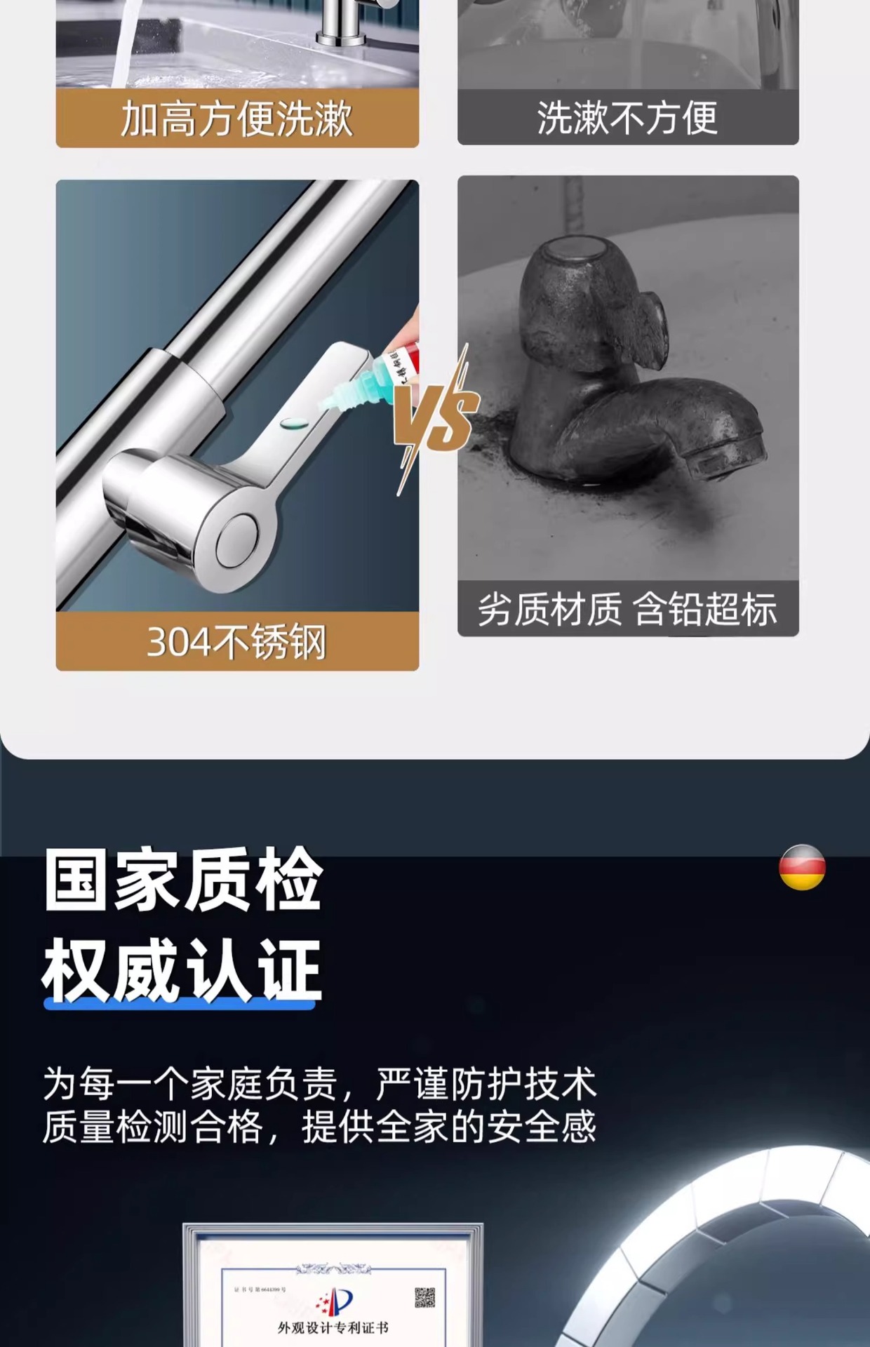 스테인레스 스틸 욕실 세면기 수도꼭지 가정용 범용 싱크 테이블 주방 야채 분지 차갑고 뜨거운 2 대 1