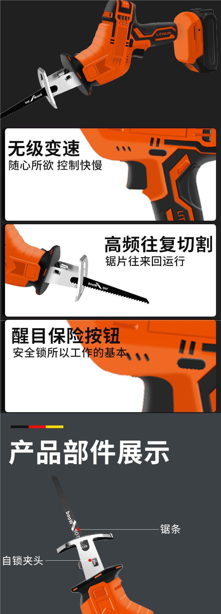 리튬 배터리 세이버는 고출력 충전식 가정용 소형 실외 핸드 헬드 로깅을 보았습니다.스토어 가기