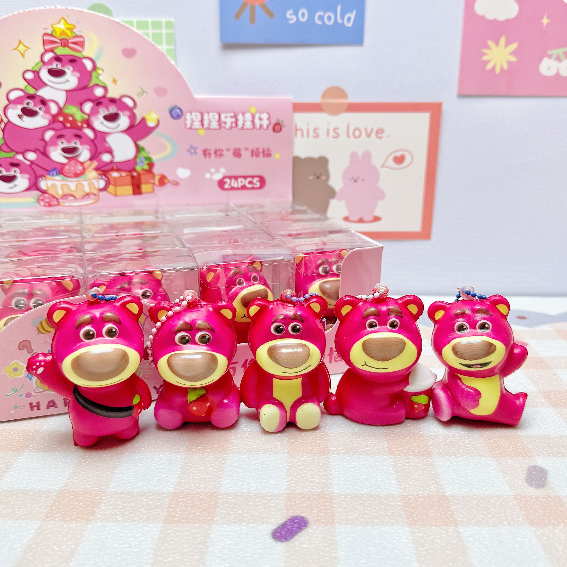 • 24개 딸기곰 느린 리바운드 핀치 펜던트/24개들이 큰 상자/작은 선물 보내기
