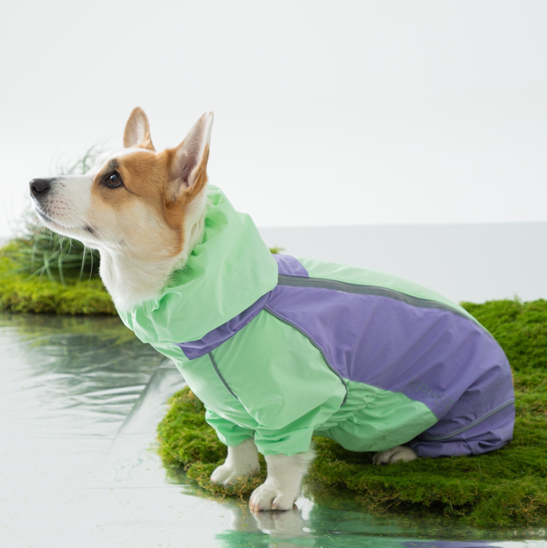 대비색상 코기 레인코트 중소형견 사계절용 방수 방습 애완견 옷