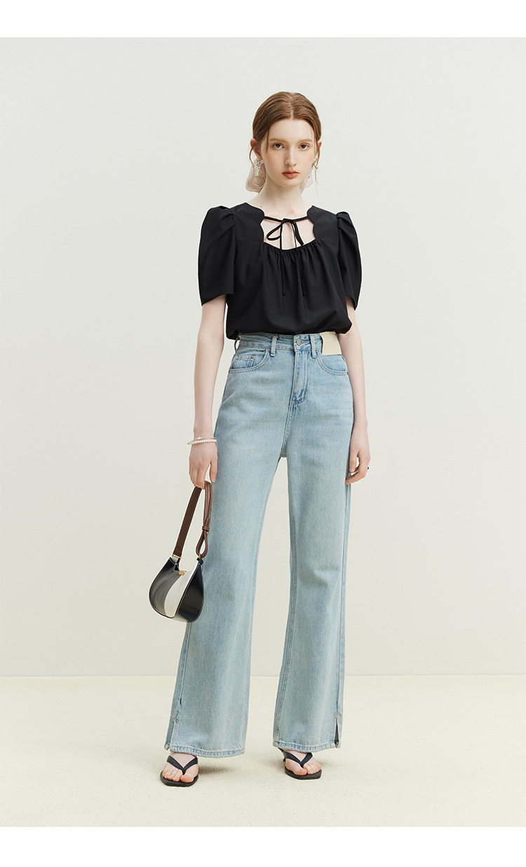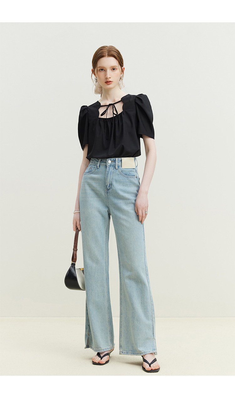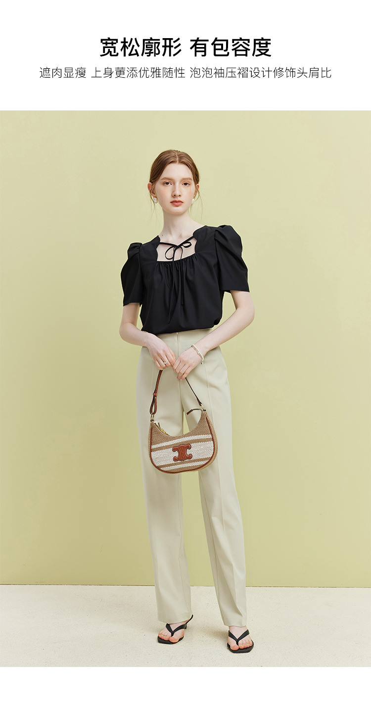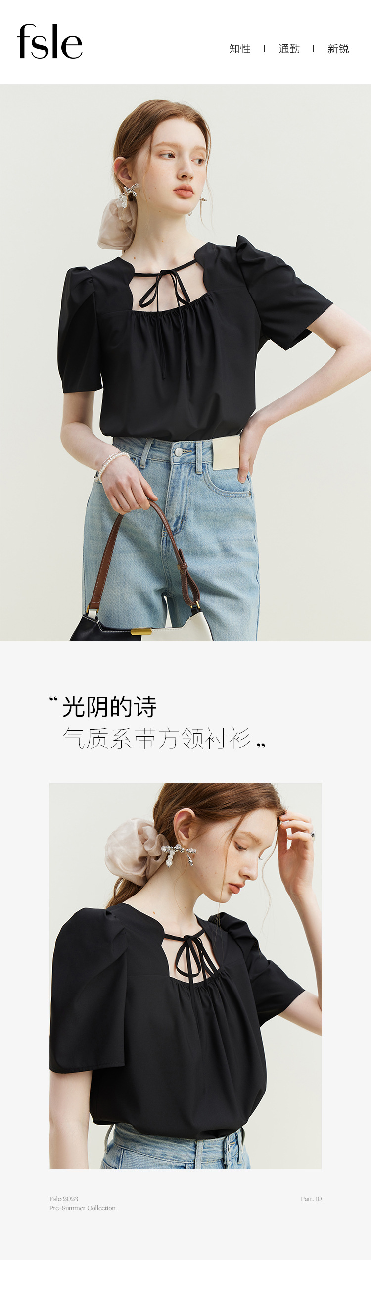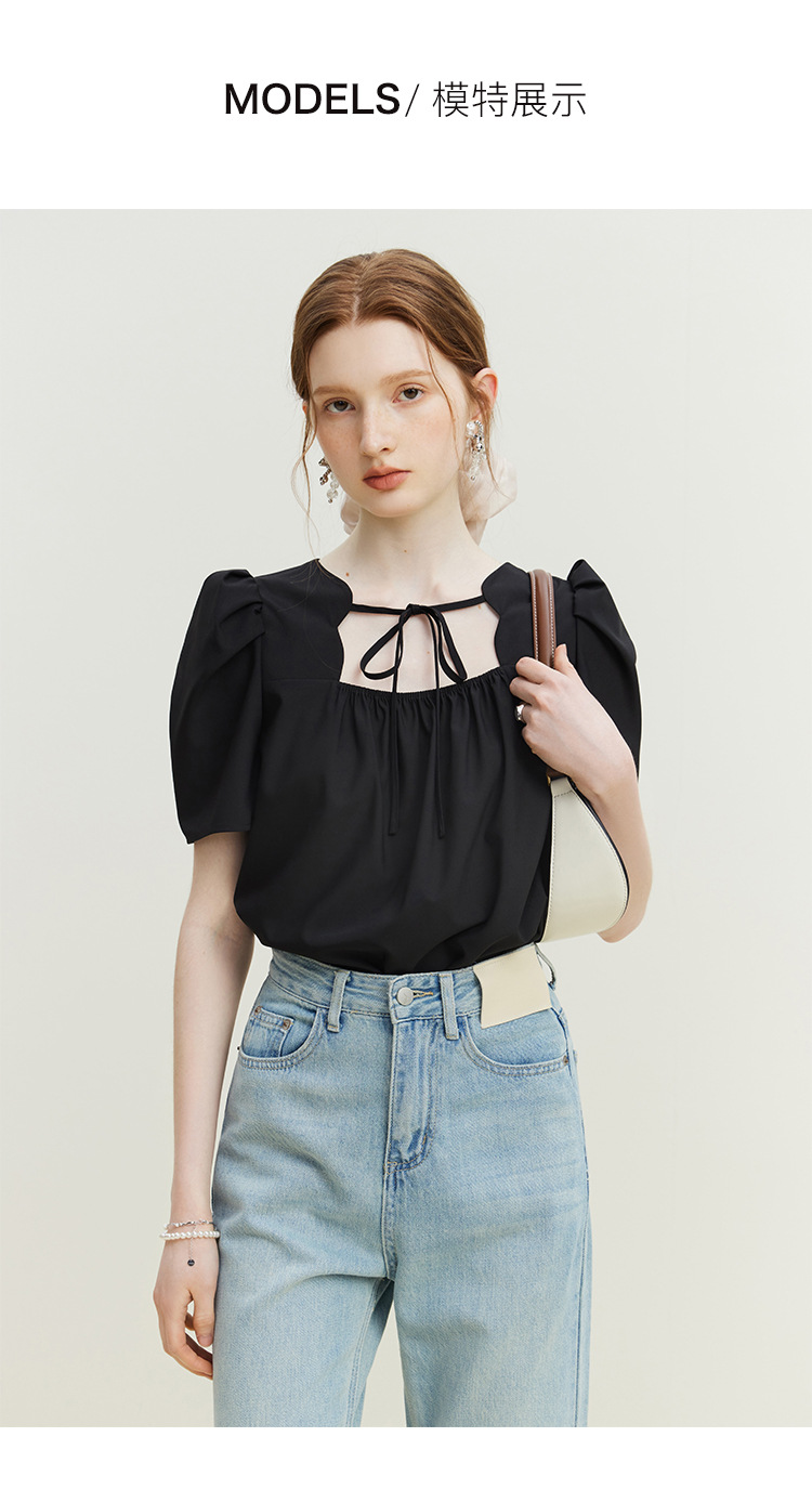 그물 피겨 프렌치 퍼프 소매 반팔 셔츠 여성 디자인 틈새 여름 스퀘어 칼라 탑스토어 가기