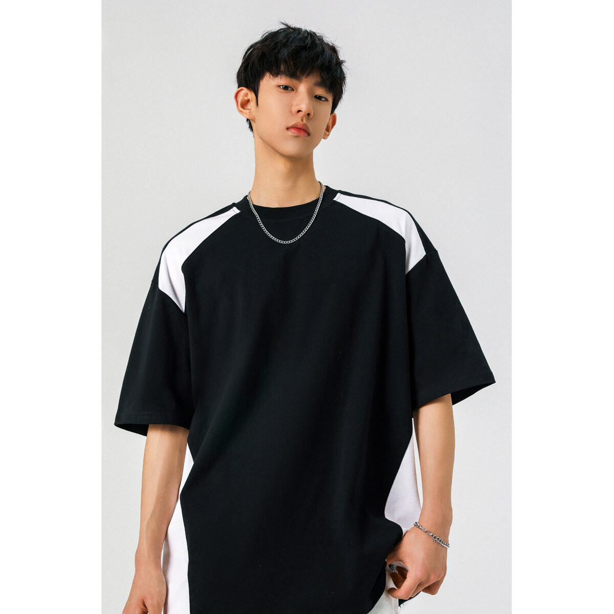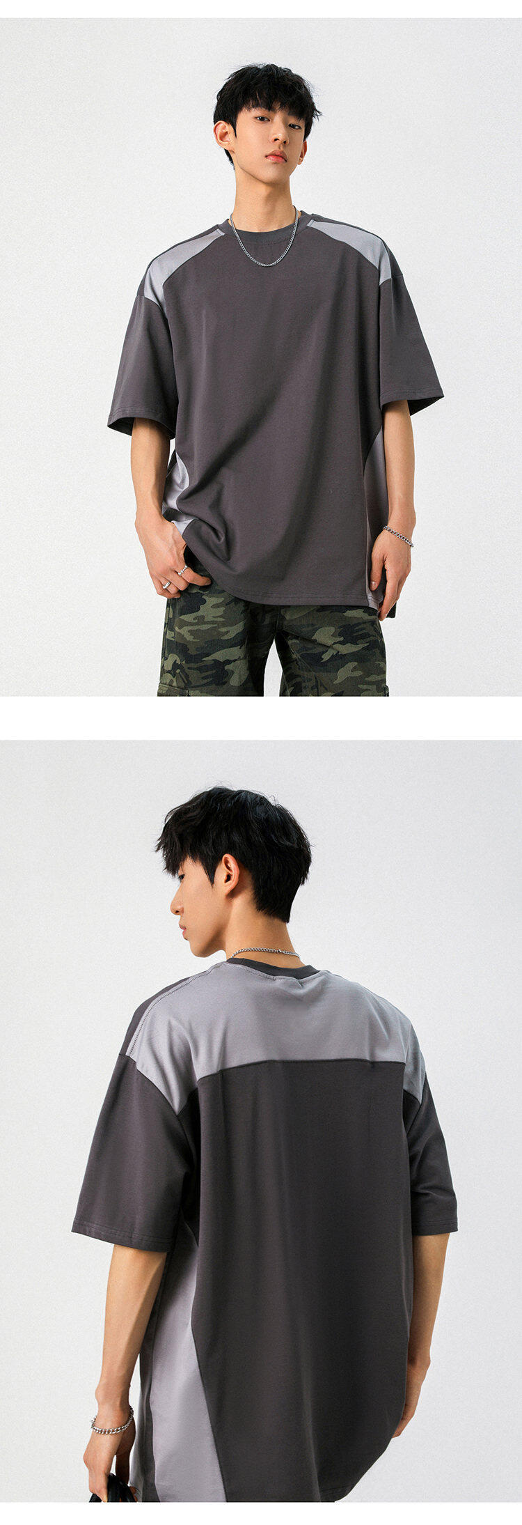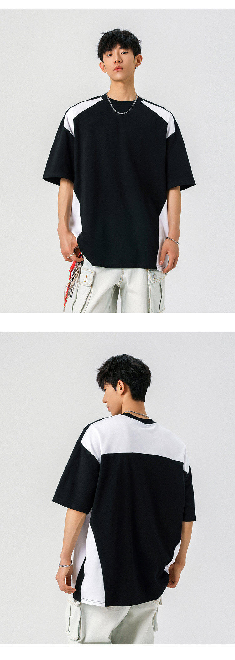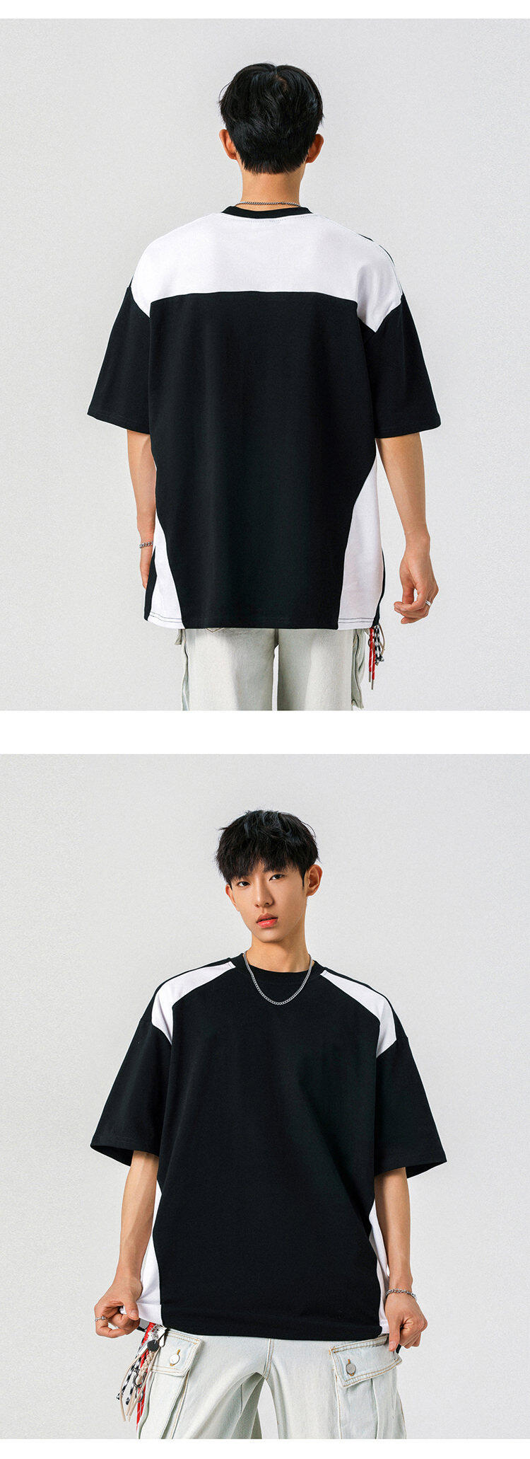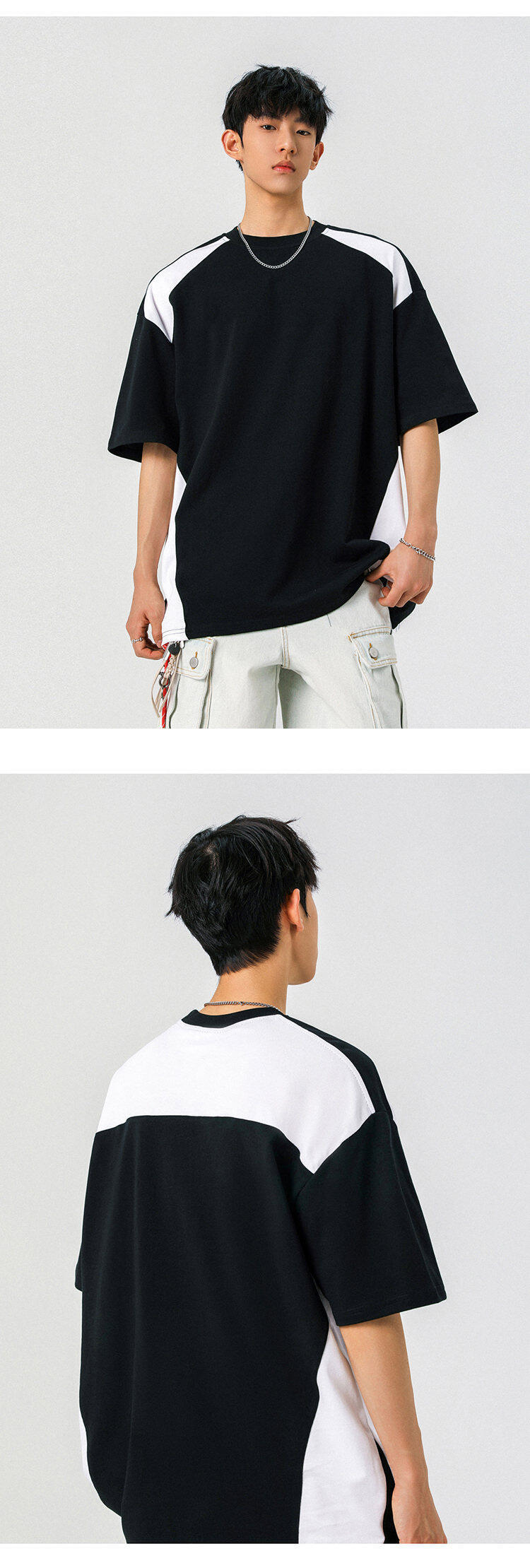 NASA 여름 레트로 하이 스트리트 남자 짧은 소매 스티칭 통기성 스포츠 대조 컬러 느슨한 트렌디 브랜드 미국 레트로 티셔츠스토어 가기