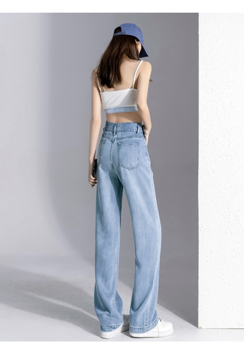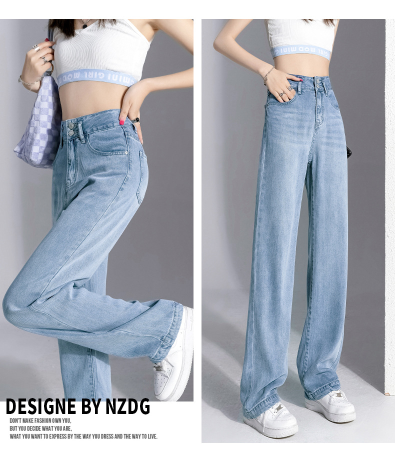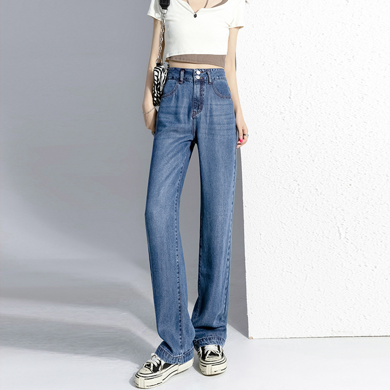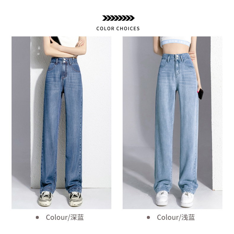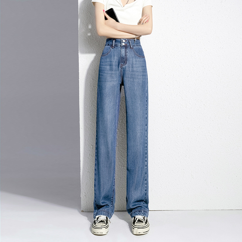 하이 퀄리티 텐셀 청바지 여성의 2025 년 봄과 여름 얇은 높은 허리 느슨한 아이스 실크 스트레이트 바지 투약