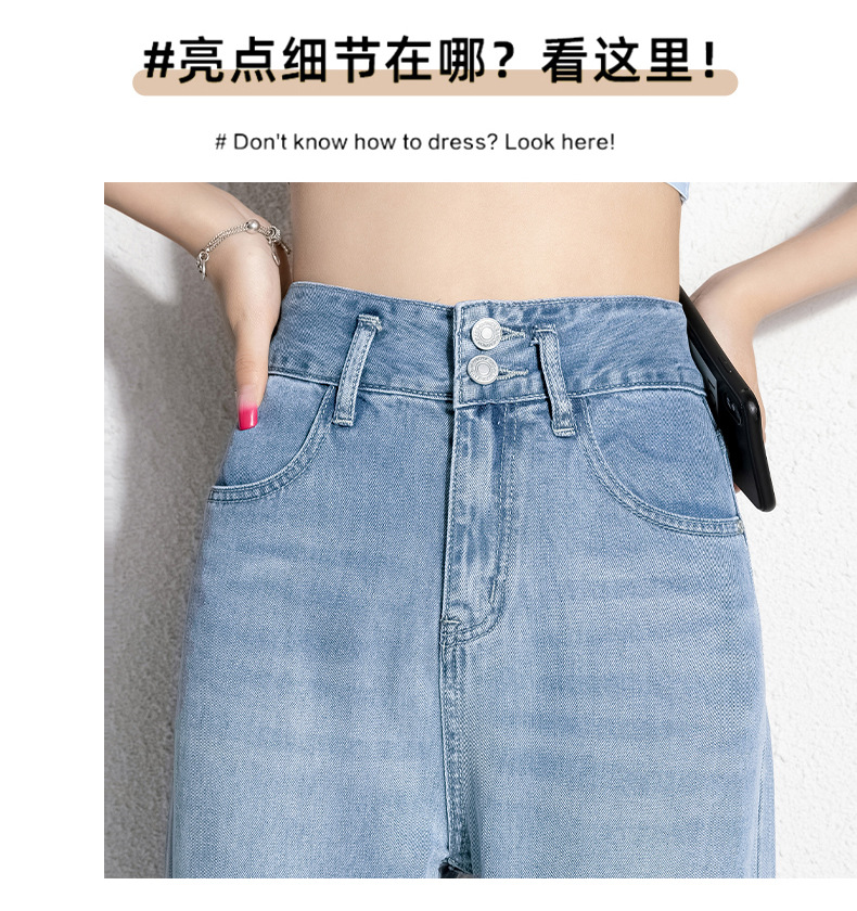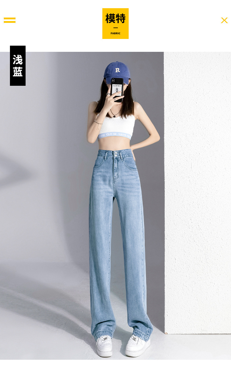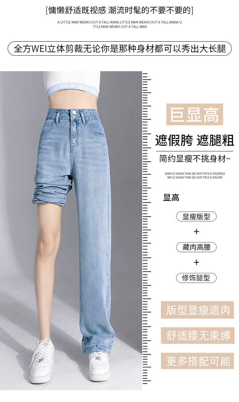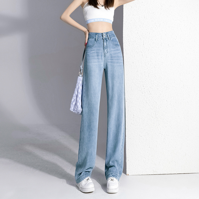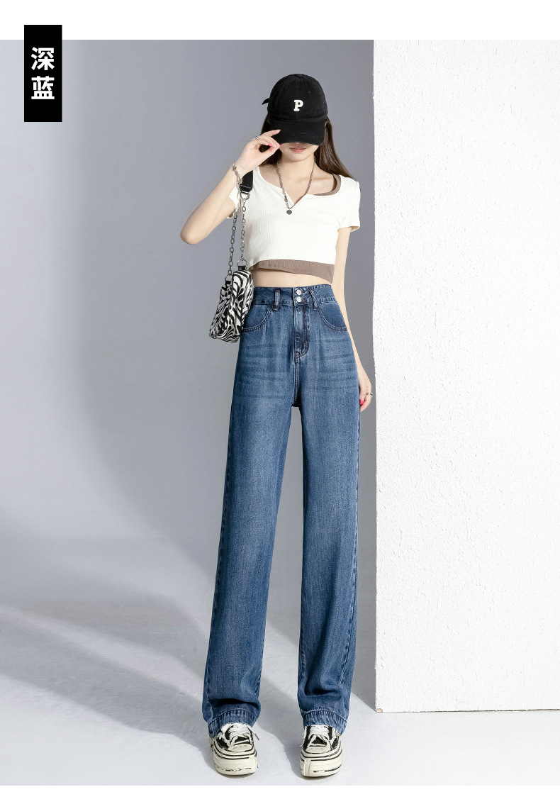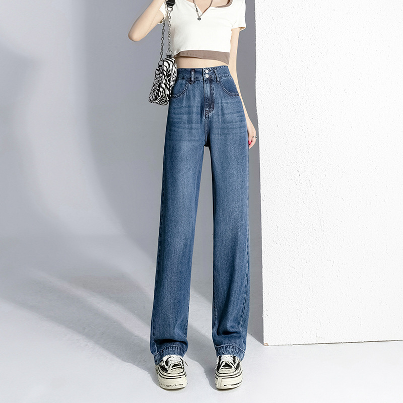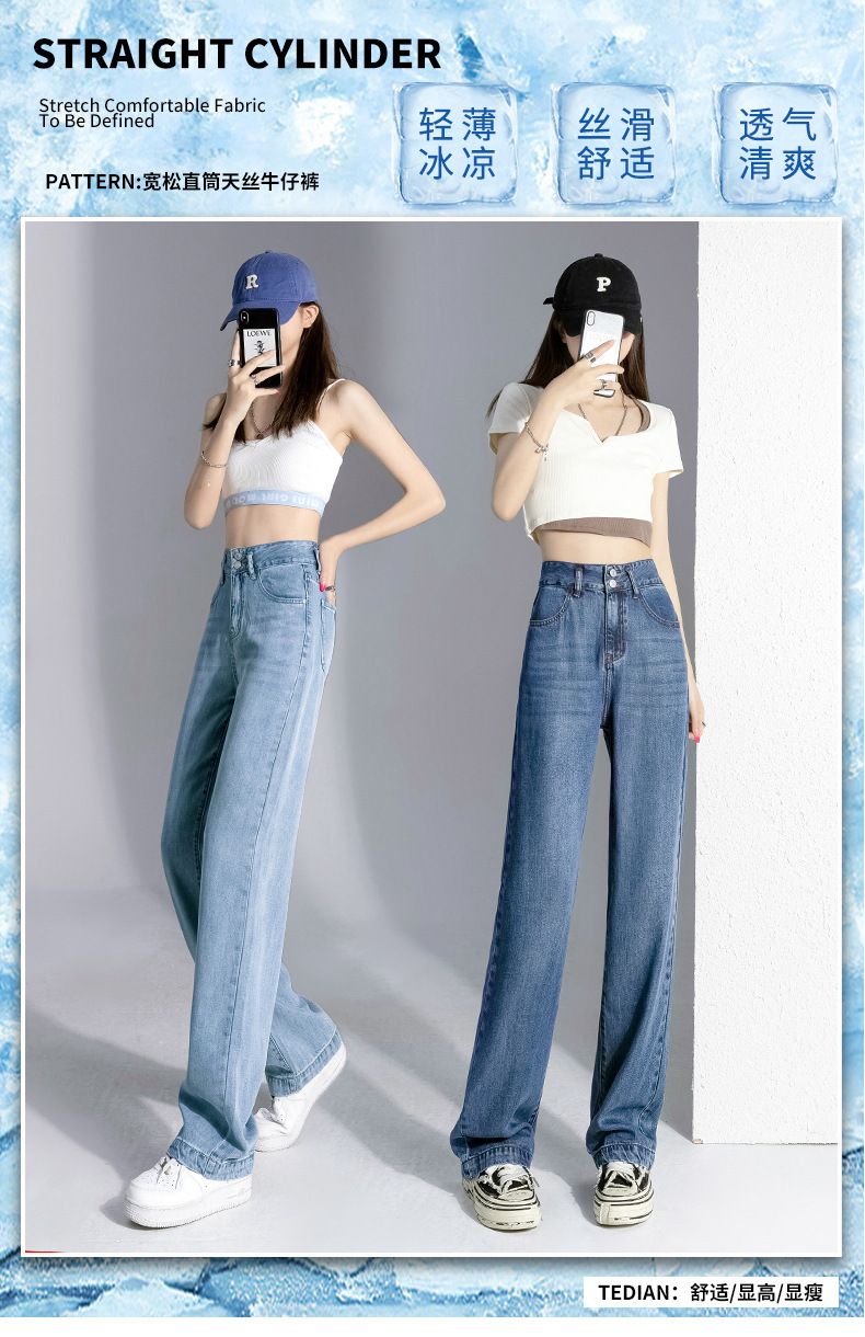 하이 퀄리티 텐셀 청바지 여성의 2025 년 봄과 여름 얇은 높은 허리 느슨한 아이스 실크 스트레이트 바지 투약스토어 가기
