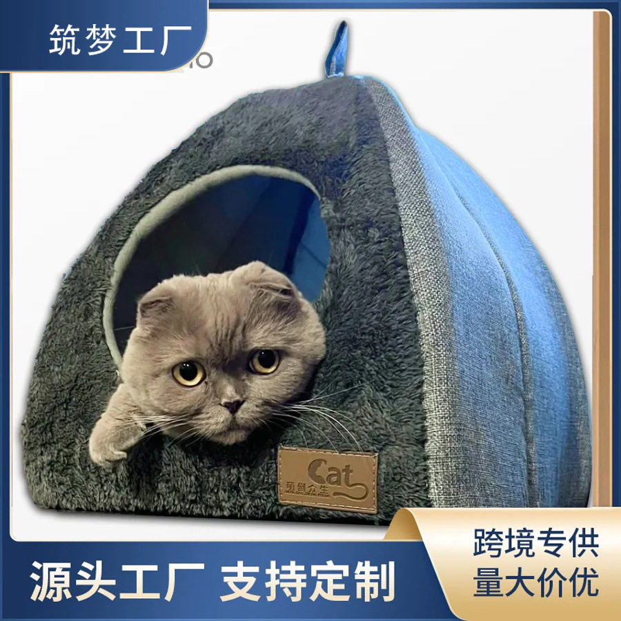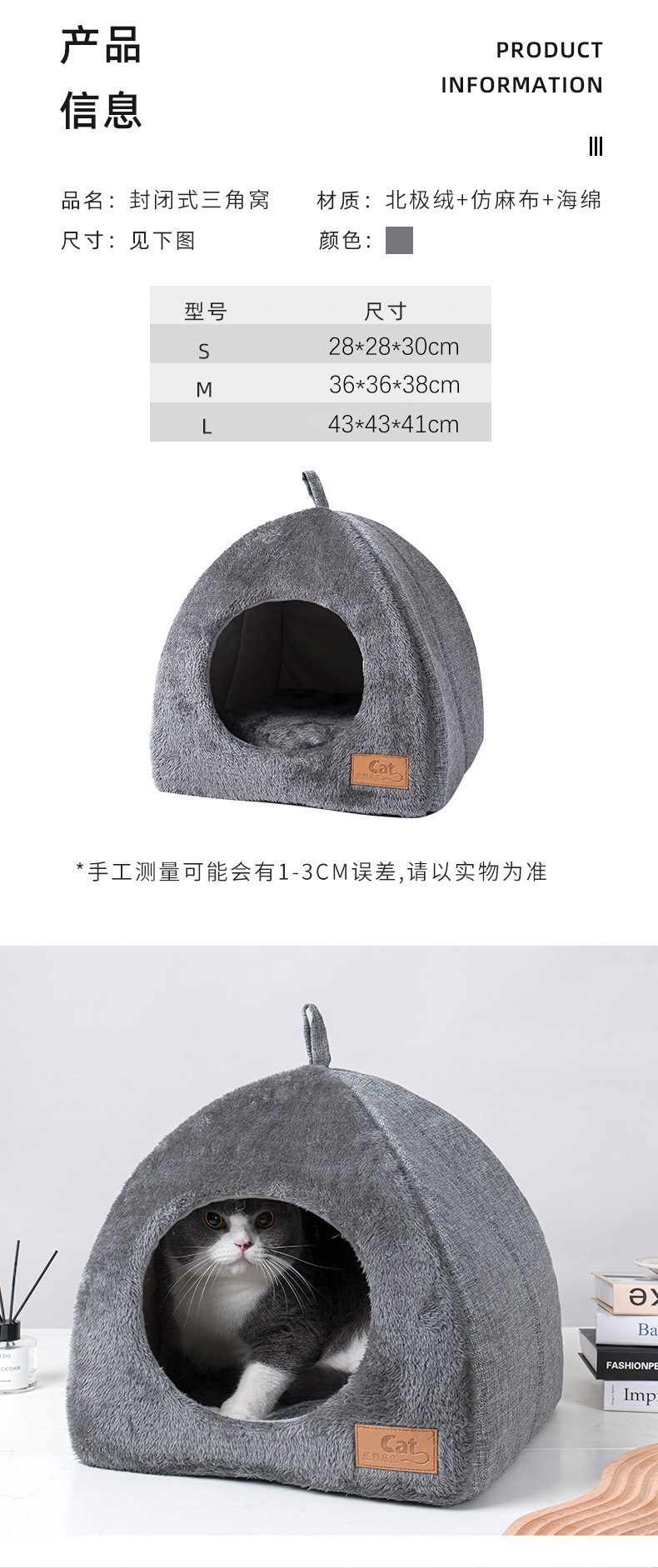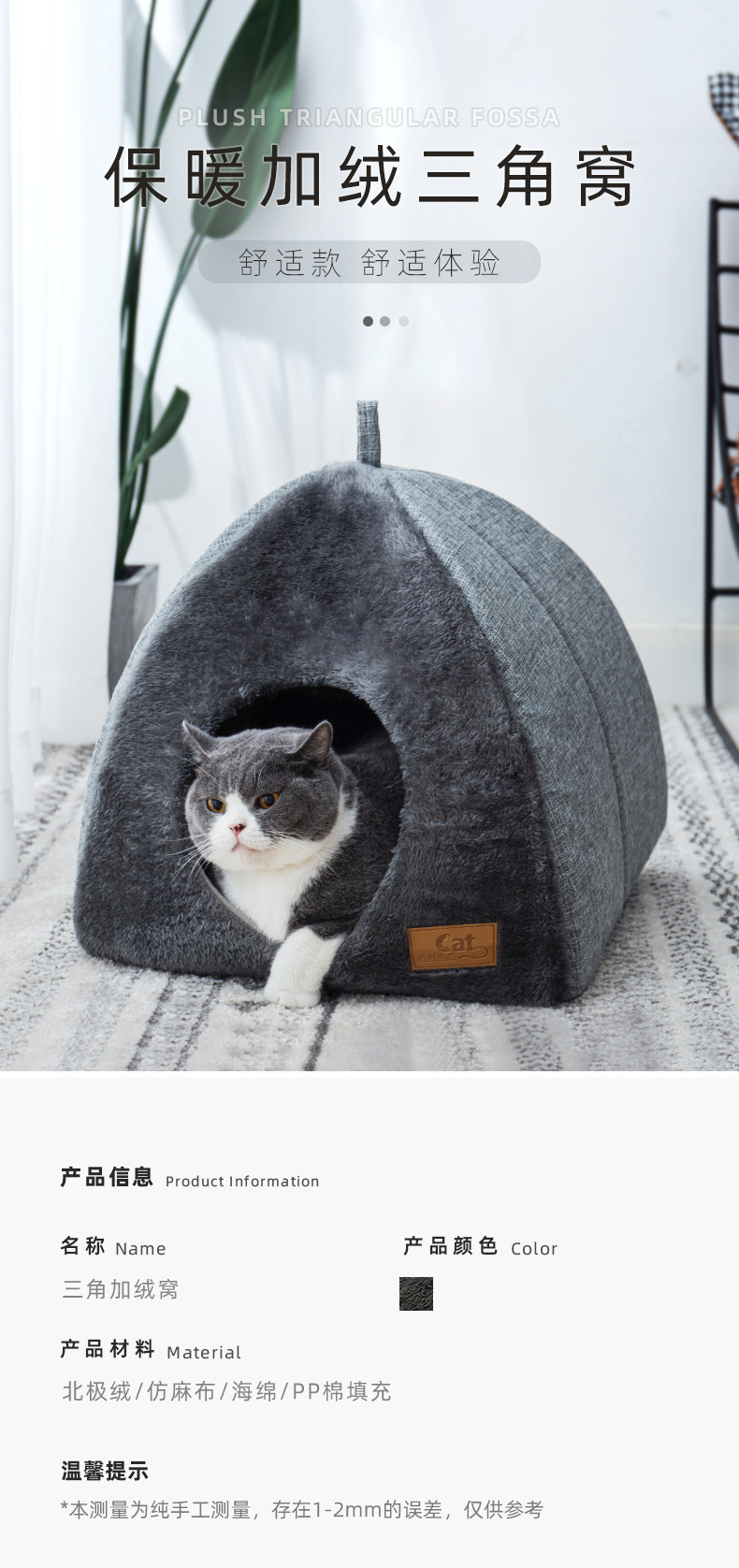 고양이 둥지 겨울 따뜻한 삼각형 두꺼운 3 차원 닫힌 고양이 침대 개 둥지 고양이 집 고양이 용품 도매
