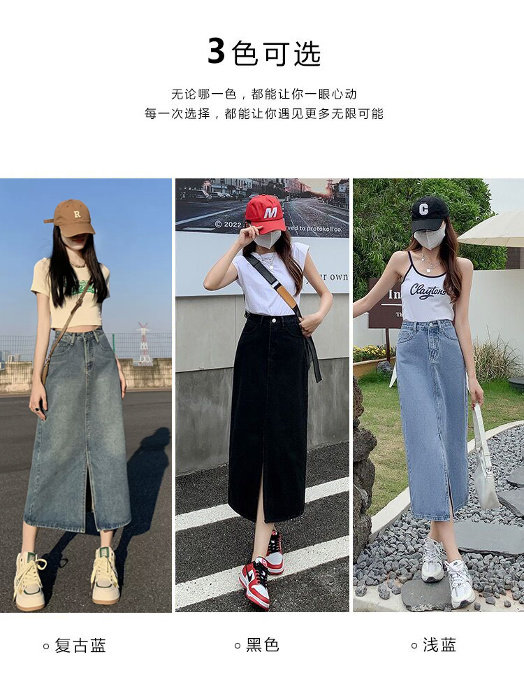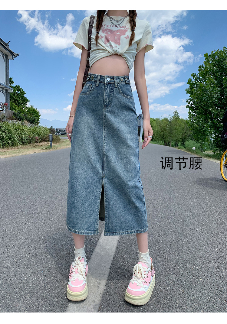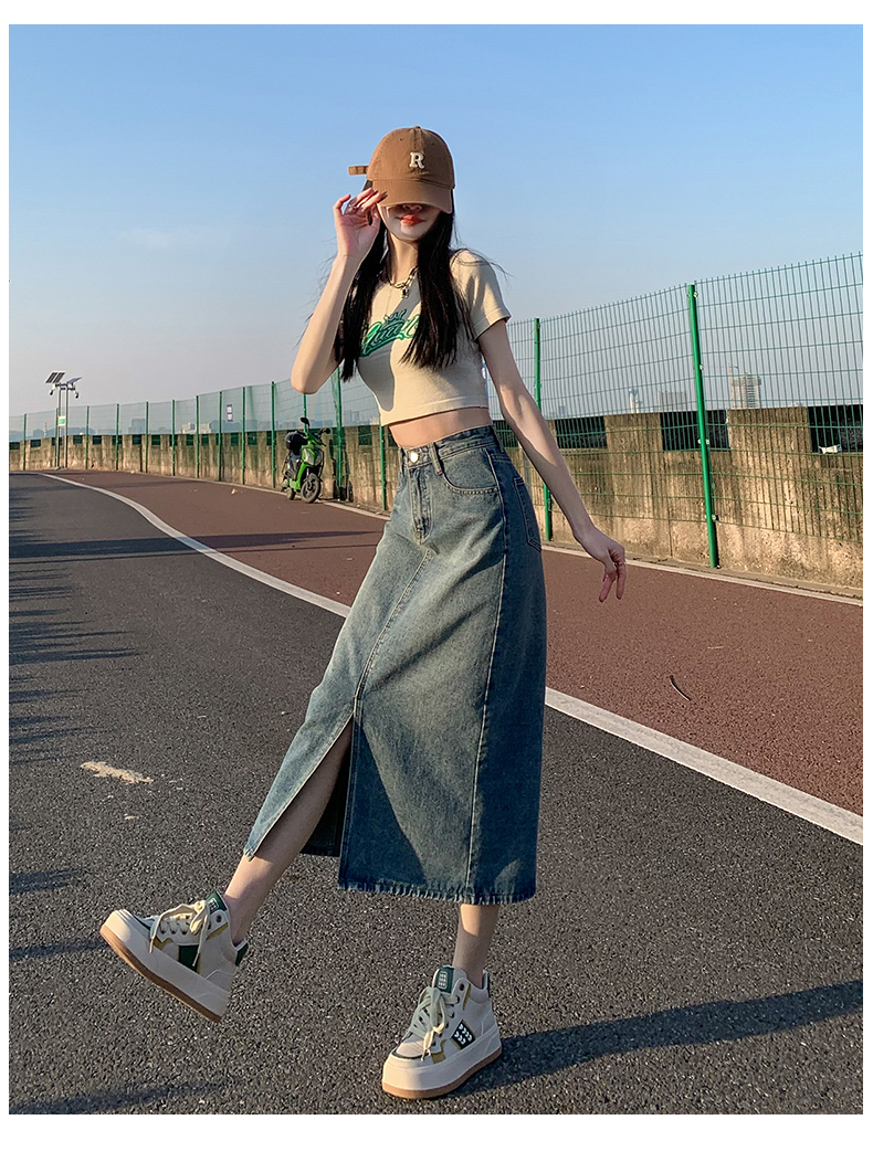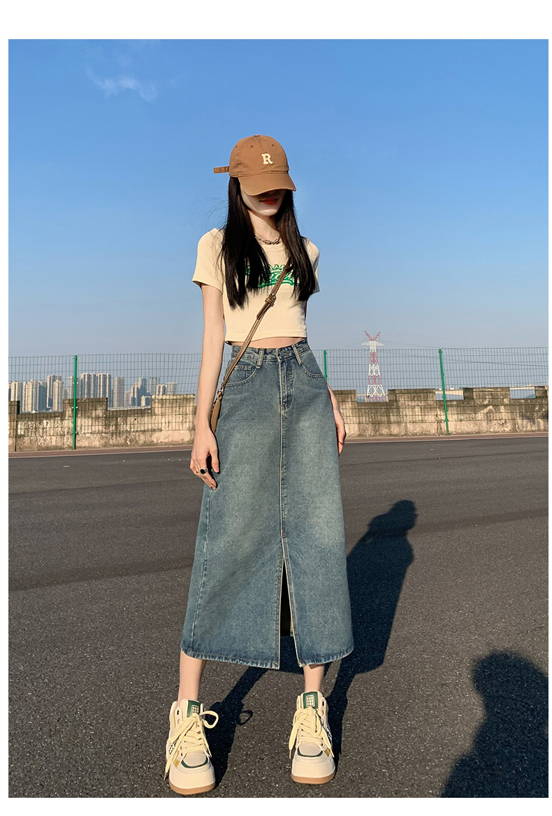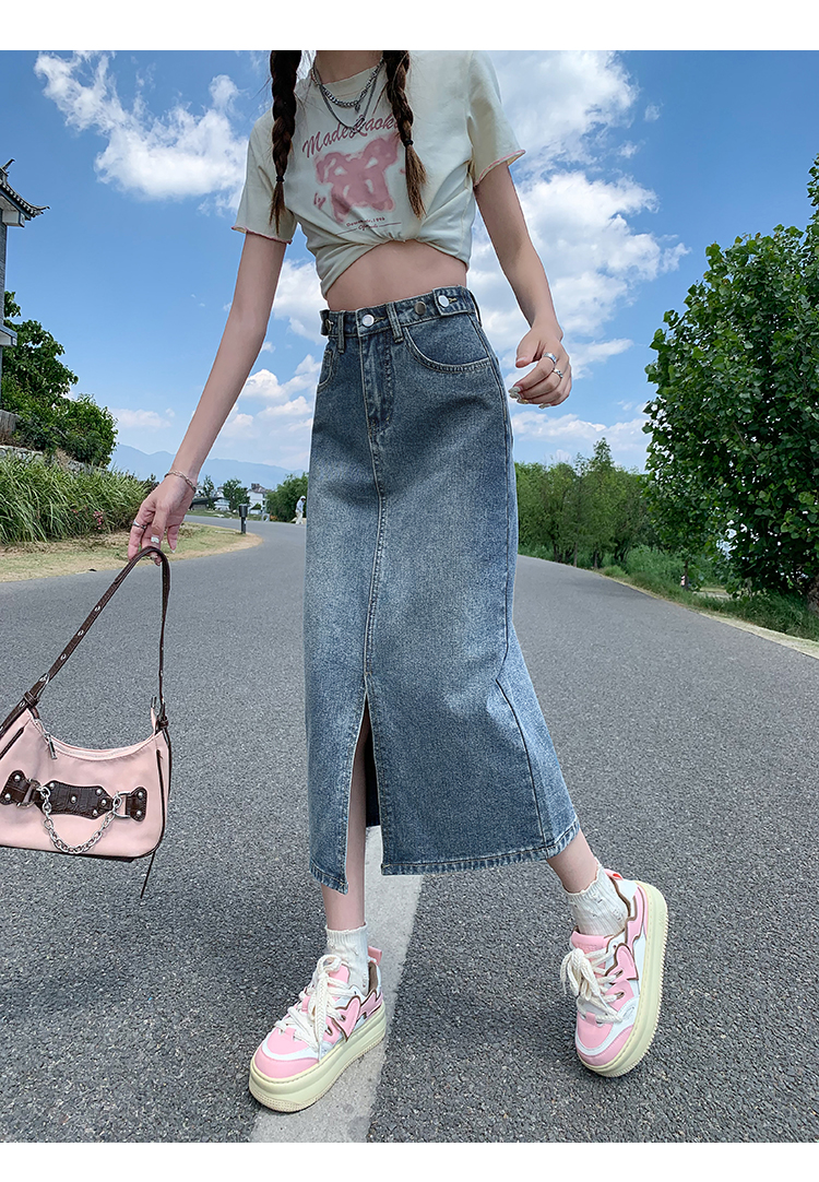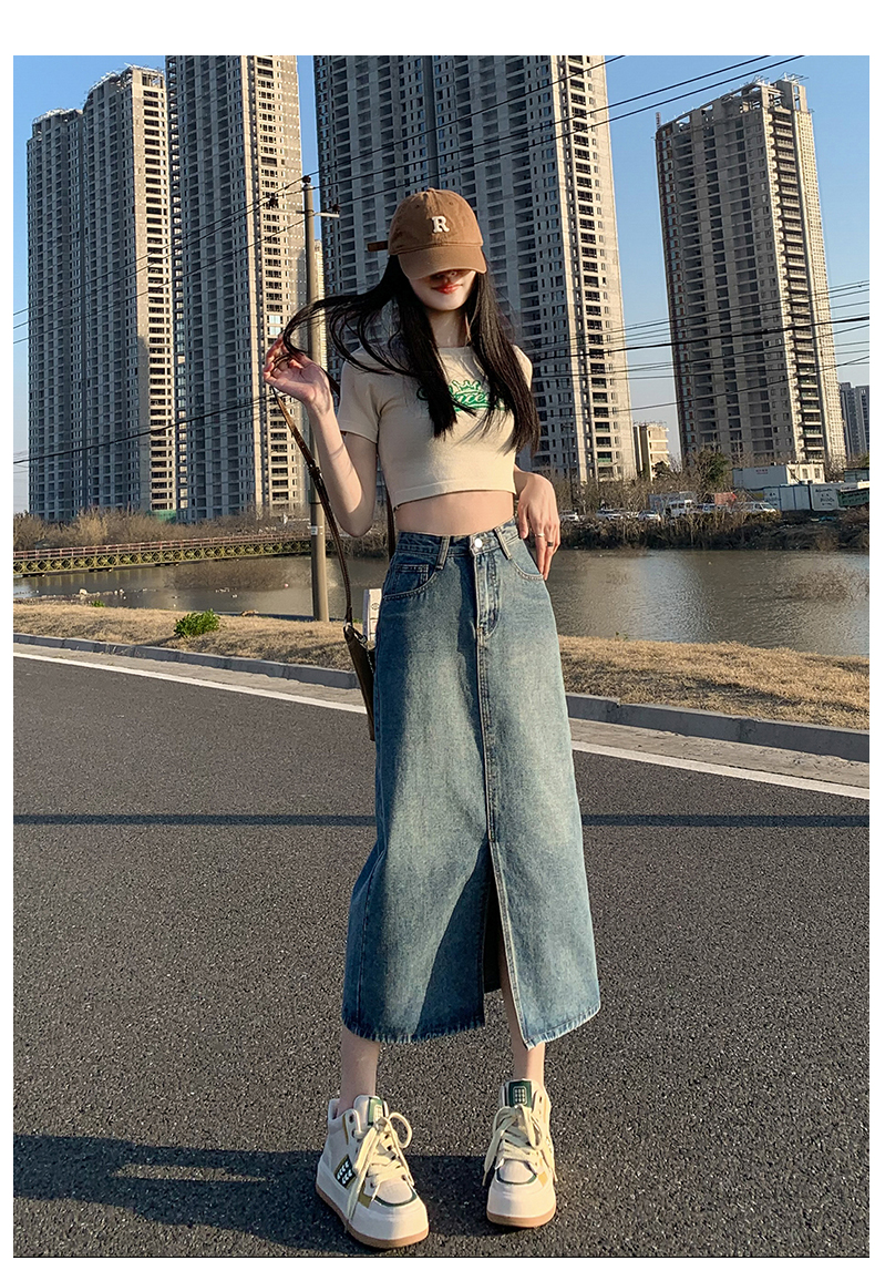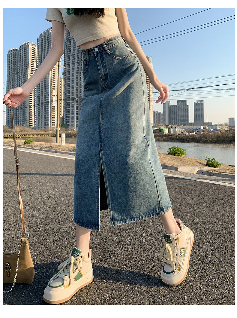 데님 스커트 여성의 가을 높은 허리 엉덩이 스커트 2025 새로운 레트로 스트레이트 루즈 A-워드 중간 길이 오버 스커트스토어 가기