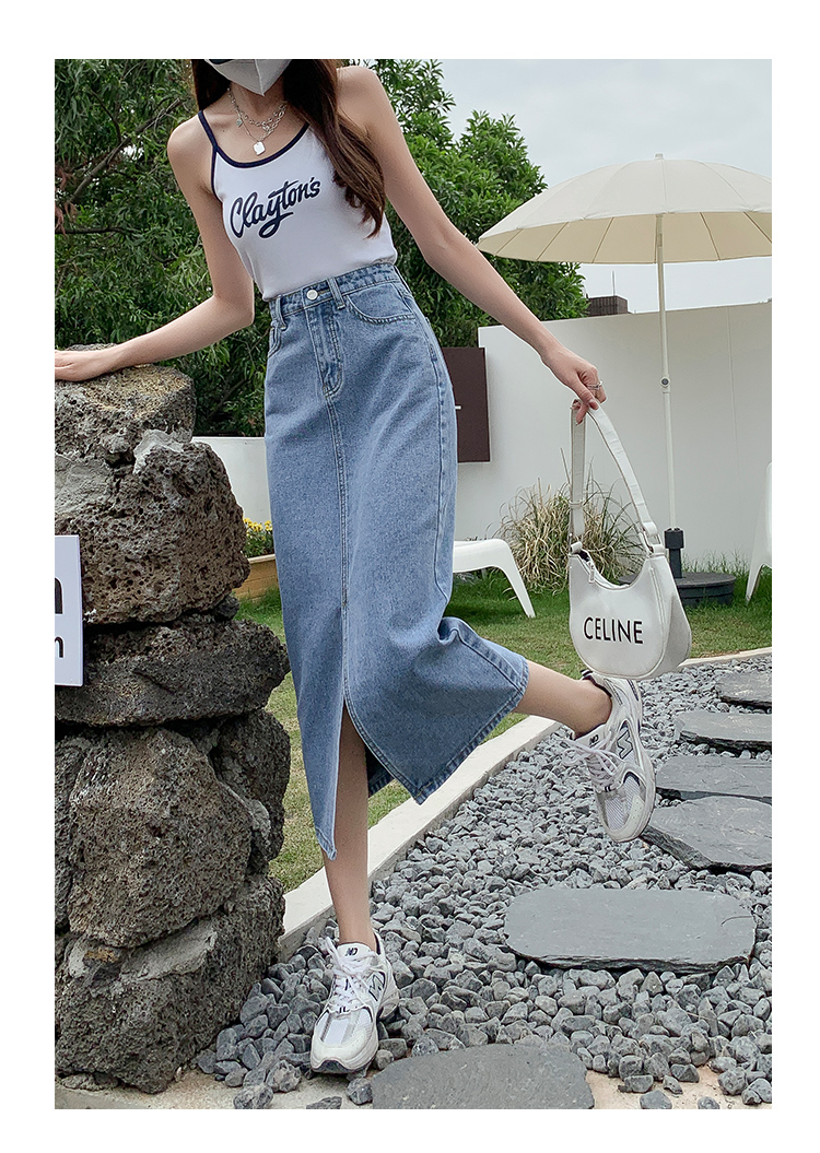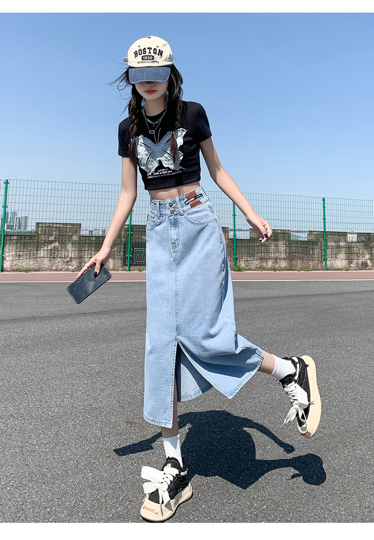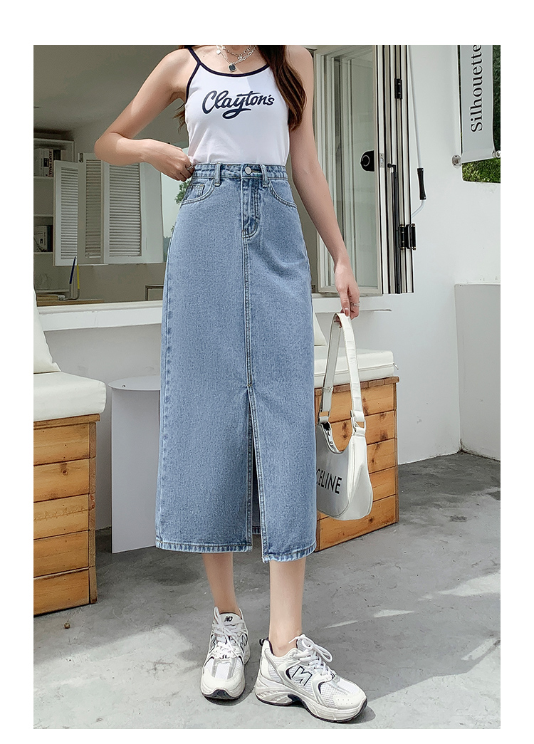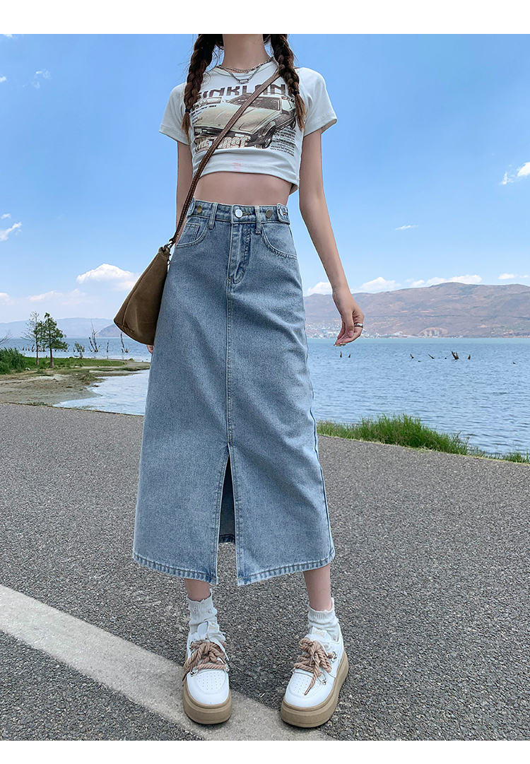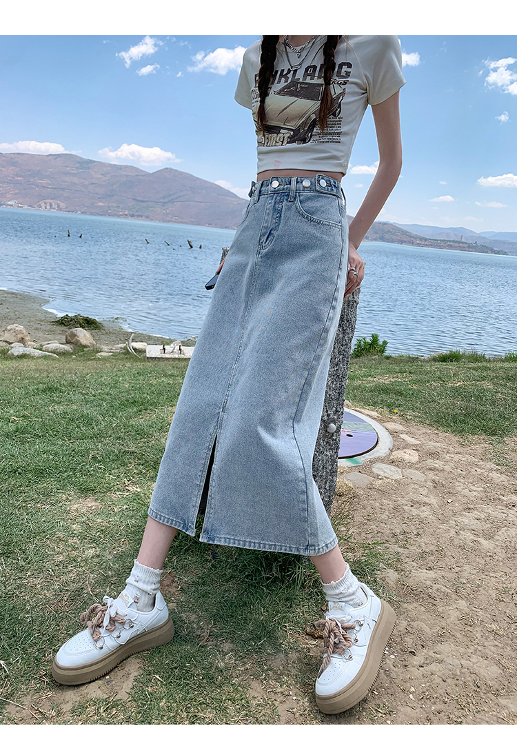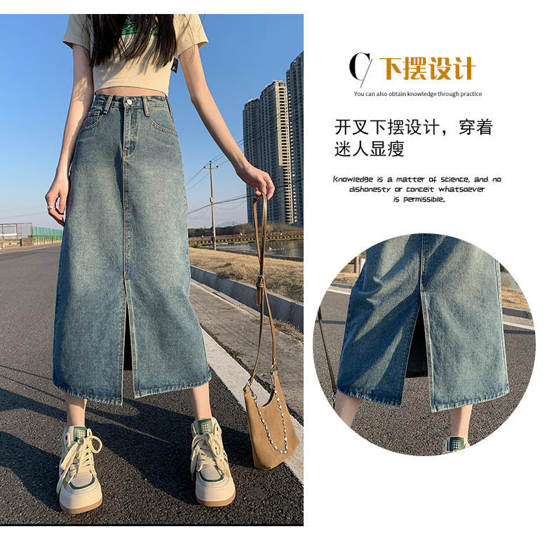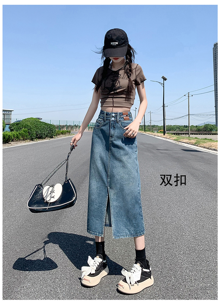 데님 스커트 여성의 가을 높은 허리 엉덩이 스커트 2025 새로운 레트로 스트레이트 루즈 A-워드 중간 길이 오버 스커트스토어 가기