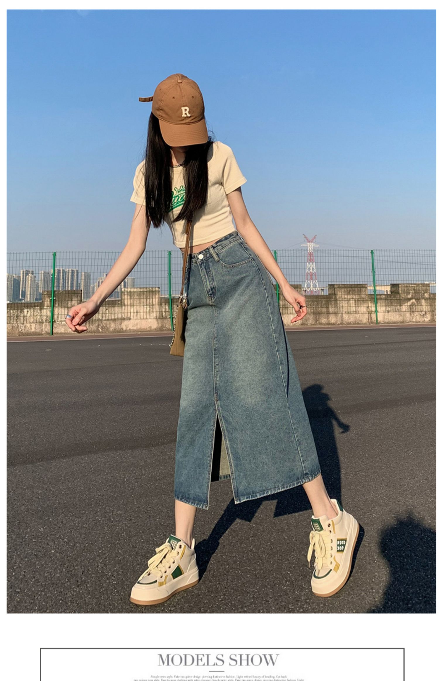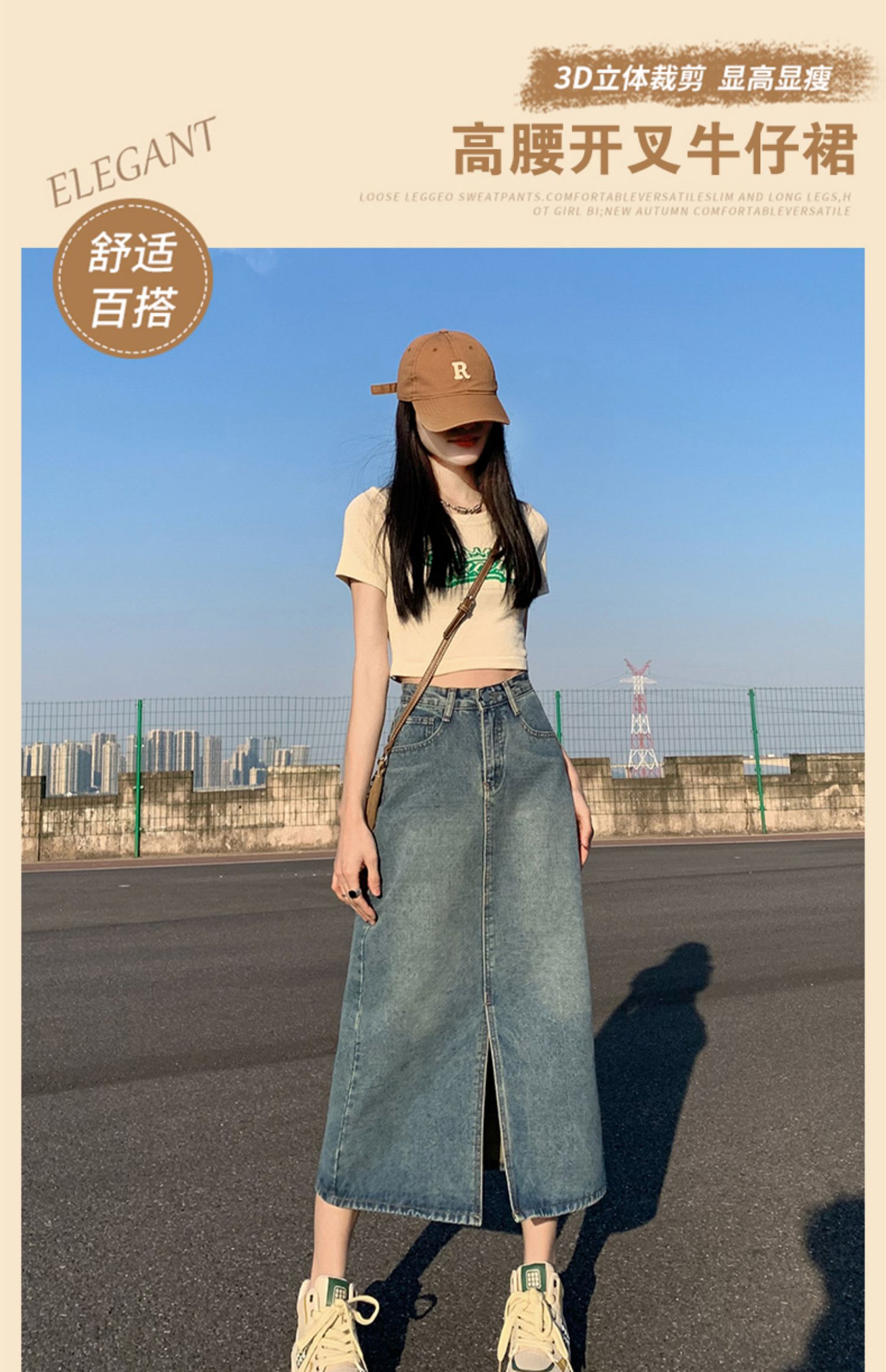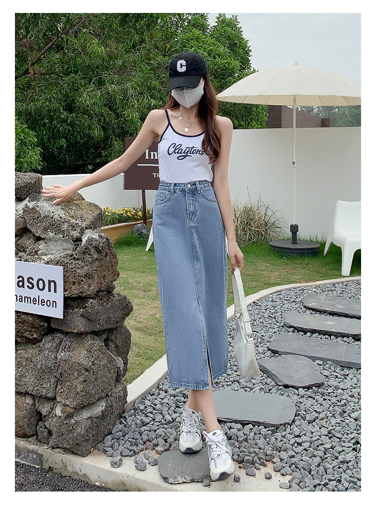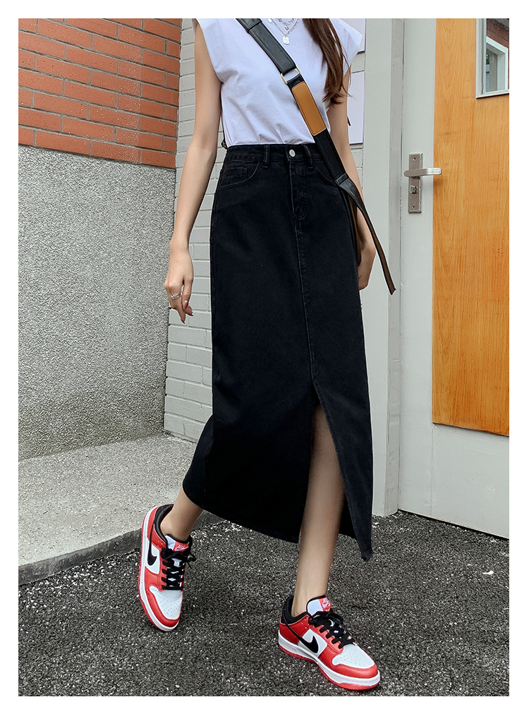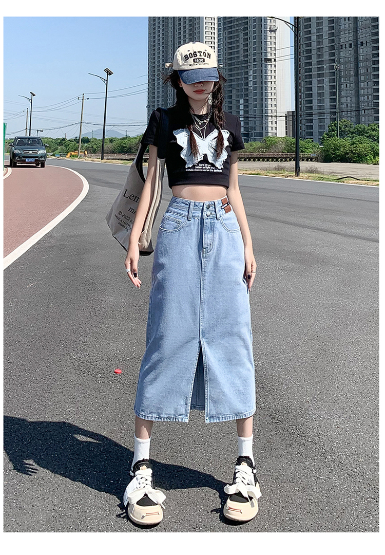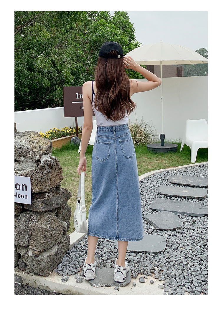 데님 스커트 여성의 가을 높은 허리 엉덩이 스커트 2025 새로운 레트로 스트레이트 루즈 A-워드 중간 길이 오버 스커트스토어 가기