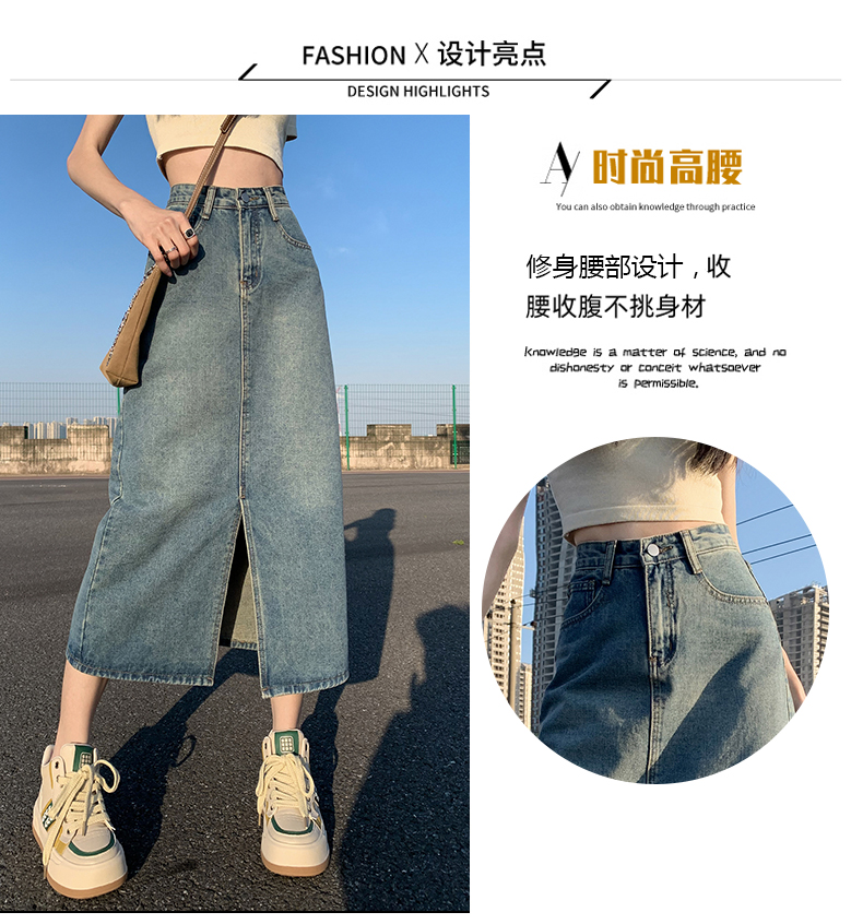 데님 스커트 여성의 가을 높은 허리 엉덩이 스커트 2025 새로운 레트로 스트레이트 루즈 A-워드 중간 길이 오버 스커트