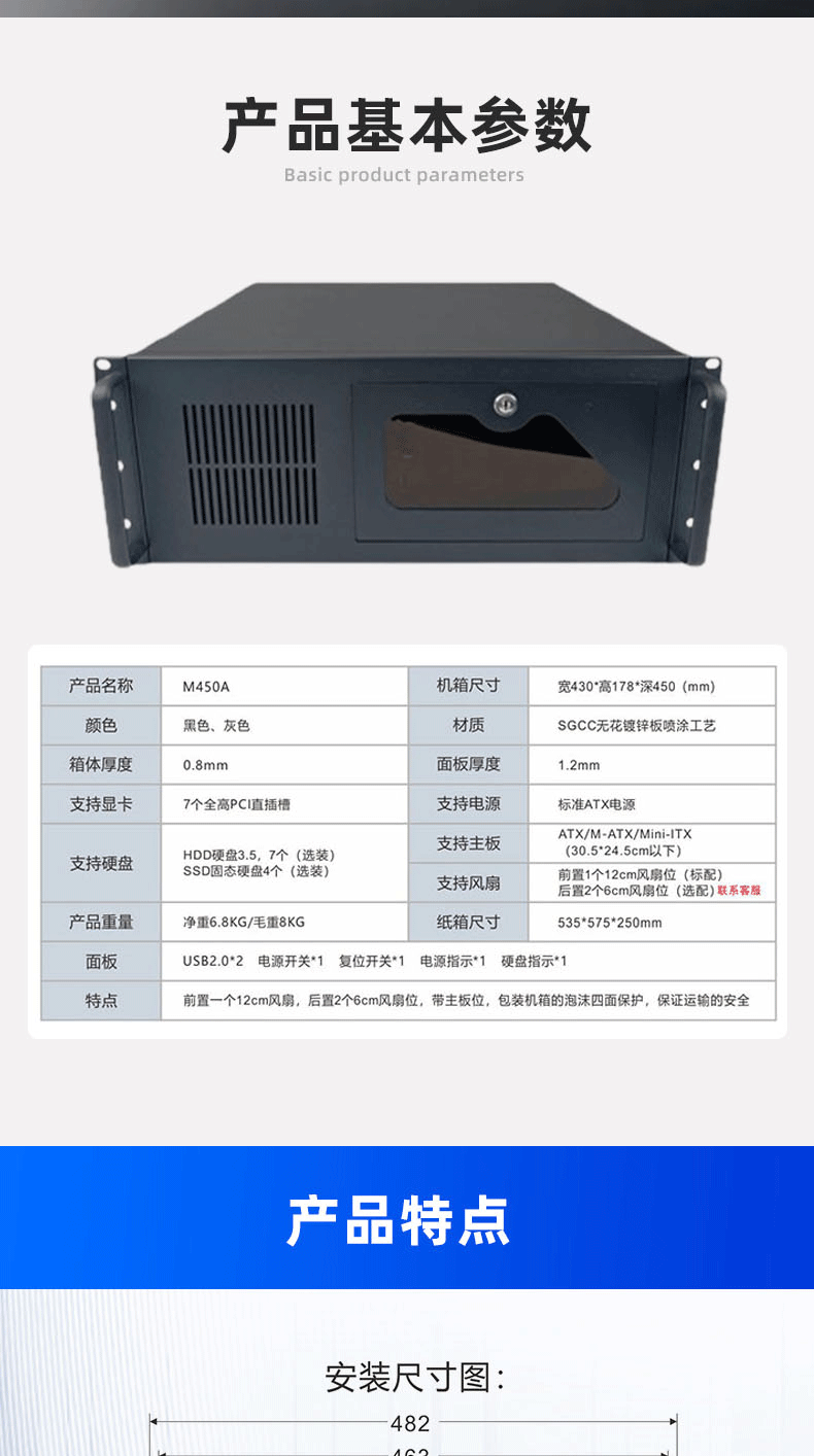 4U 산업용 제어 섀시 450 랙 장착형 캐비닛 표준 ATX 마더보드 인터넷 카페 모니터링 스테이션 서버 섀시