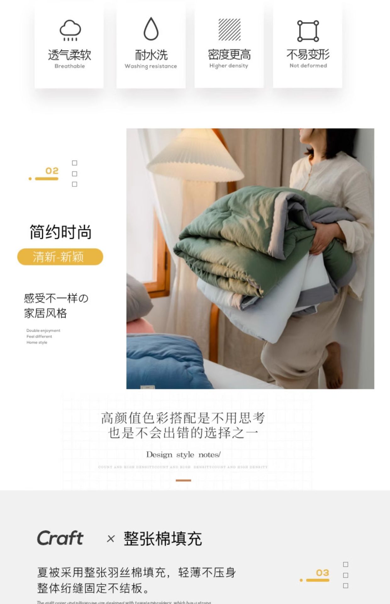 • 200x230cm 여름이불 3종세트 - 여름이불 + 베갯잇 2개