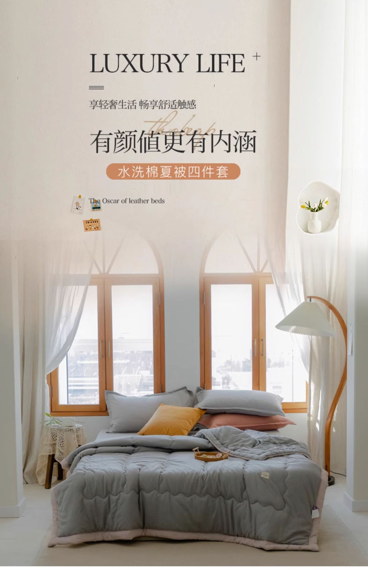 에어컨 퀼트 여름 쿨 퀼트 4 피스 세트 여름 퀼트 싱글 머신 세탁기 얇은 여름 이불 순수 코튼 여름 봄과 가을 더블스토어 가기