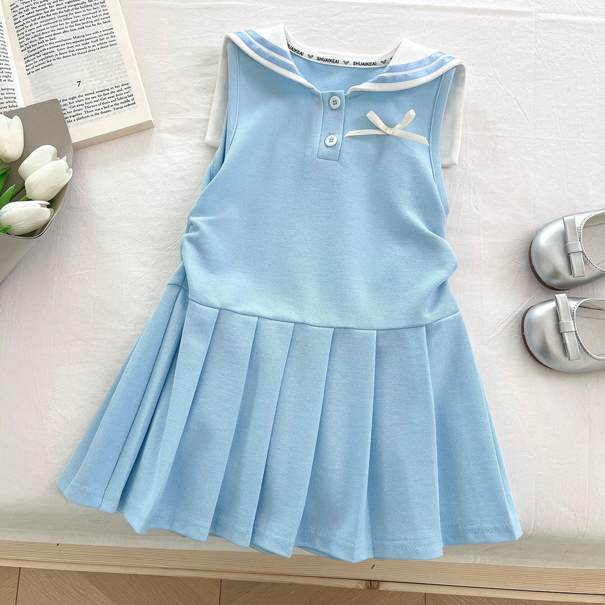 2025 여름 새로운 여성 보물 활 자매 대학 스타일 빈티지 주름 원피스 인형 목걸이