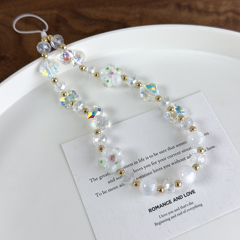 수제 구슬 패션 감각 다채로운 유리 구슬 활 꽃 구슬 휴대 전화 체인 싱글 손목 밴드 안티 손실 끈스토어 가기