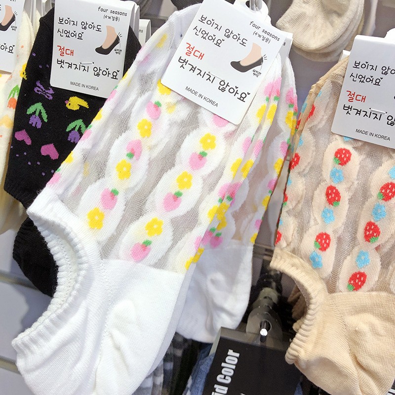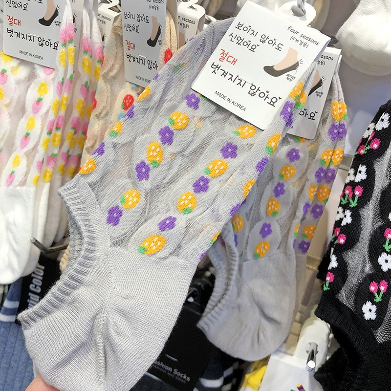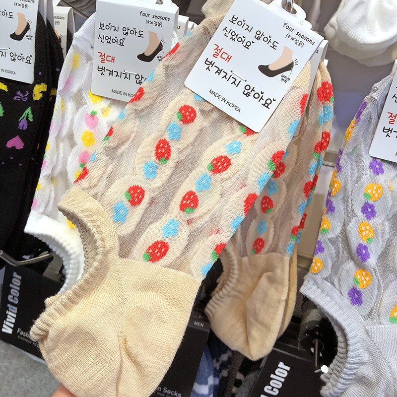 한국 glalalane 여름 메쉬 보트 양말 만화 과일 소녀 양말 크리스탈 실크 얇은 코튼 안티 오프 보이지 않음