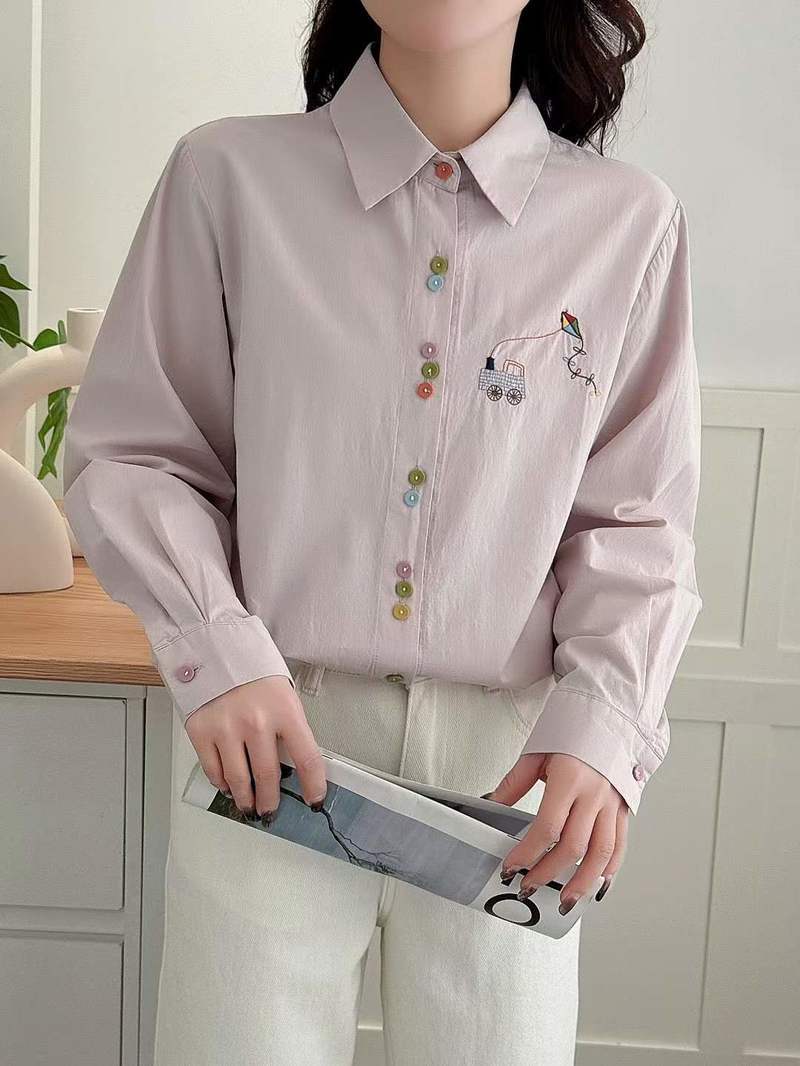 일본 모리 여성 만화 자수 연 자동차 느슨한 숙녀 카디건 긴 소매 찢기 셔츠 도매스토어 가기