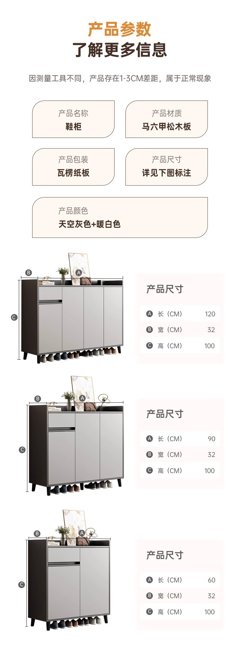 • + 크로스보더 + [더 큰 용량을 위한 두꺼운 플레이트] 도어 4개 및 서랍 1개, 스카이 그레이 + 라이트 그레이 120*32*100cm