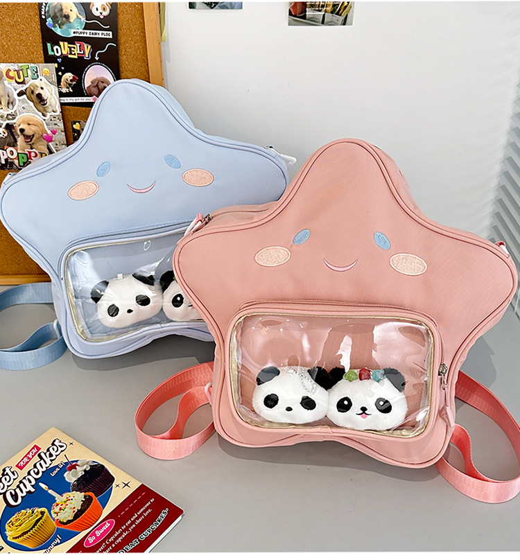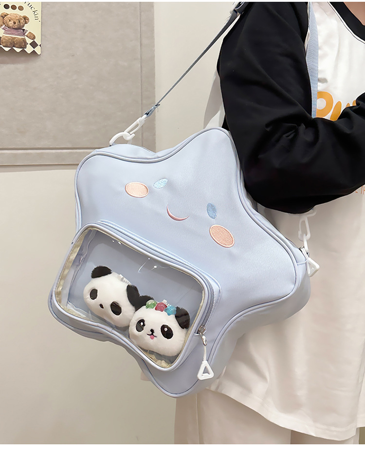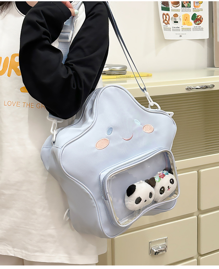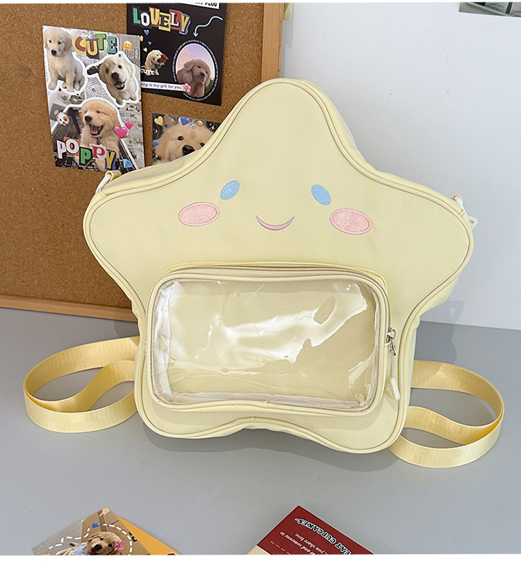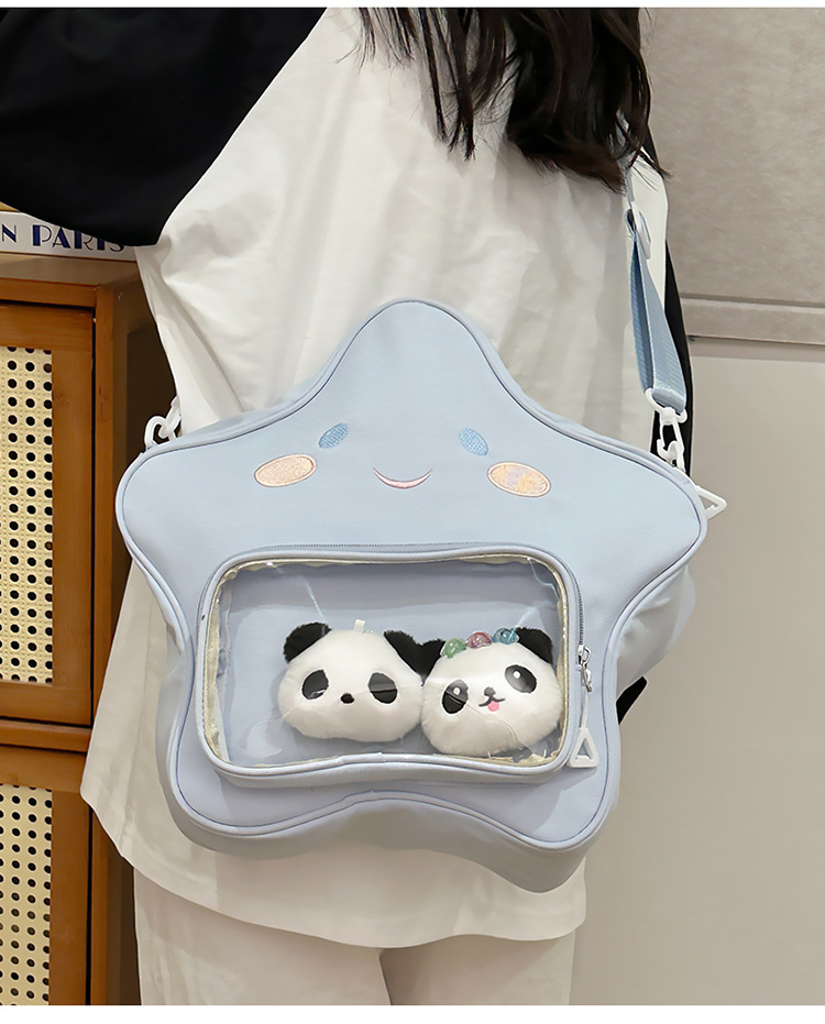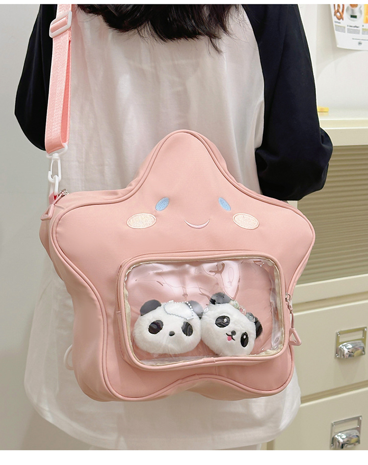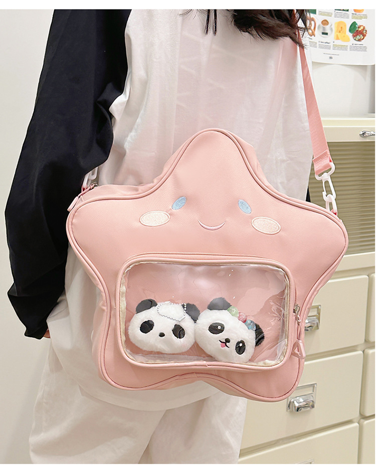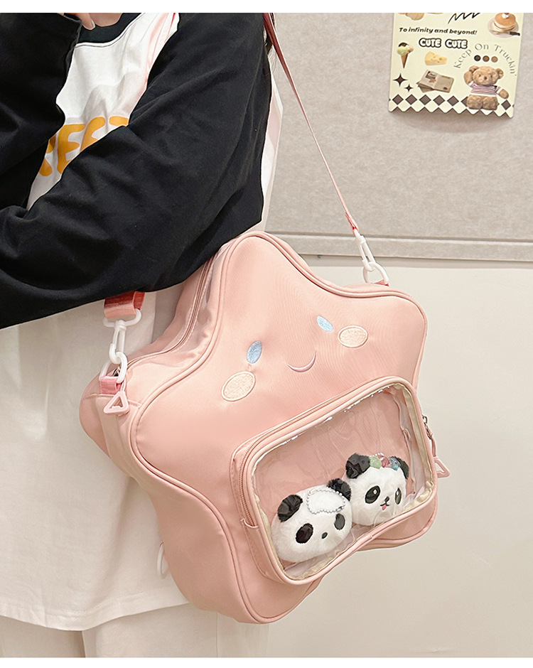 귀여운 별 만화 어깨 통증 가방 크로스 바디 백 달콤한 오각형 자수 스낵 대학생 재미있는 학교 가방