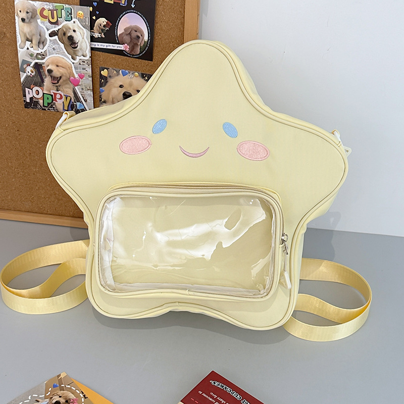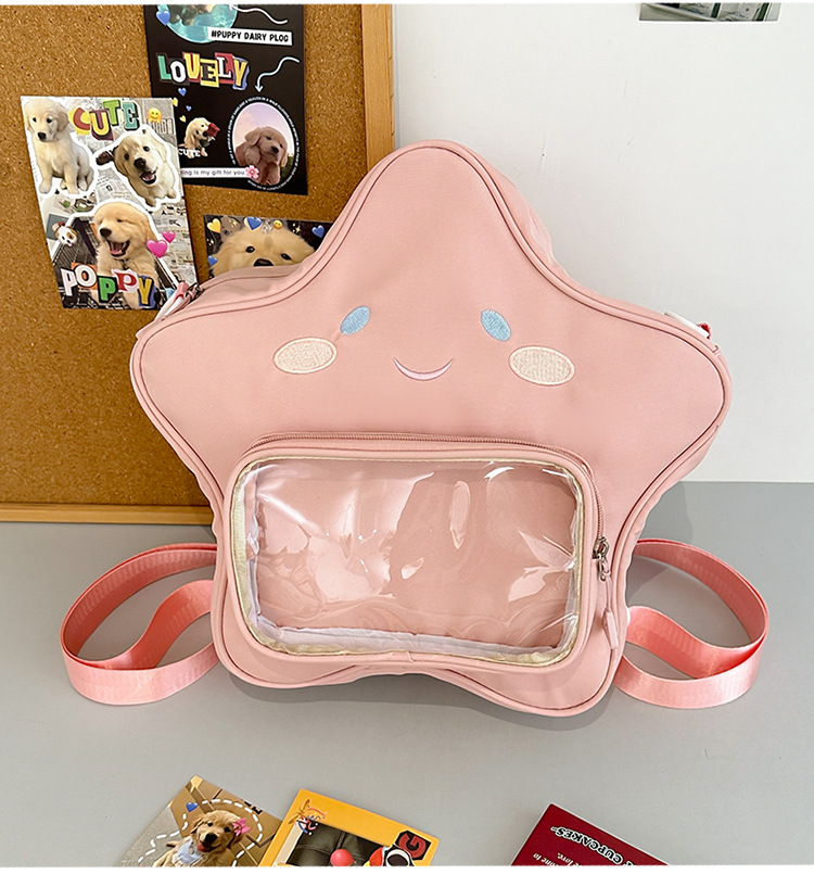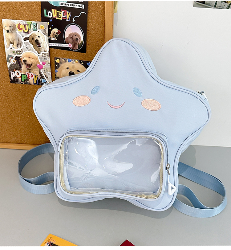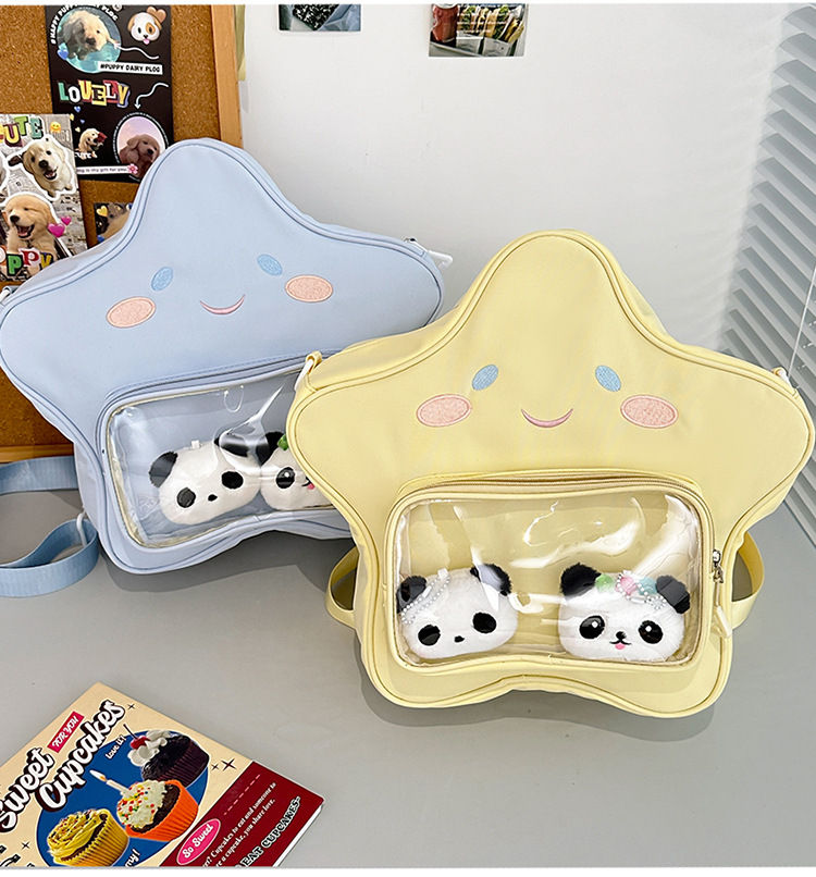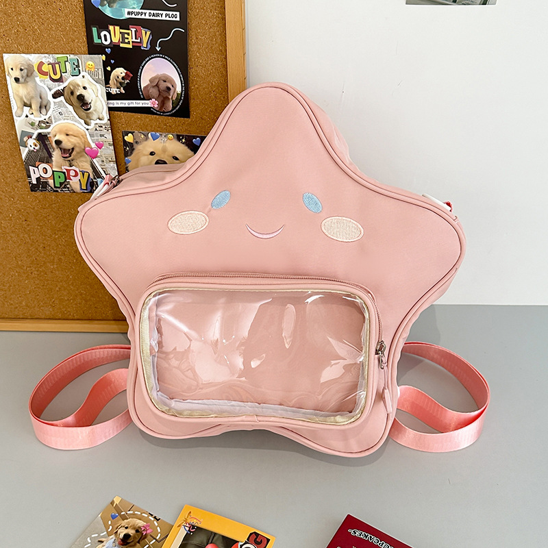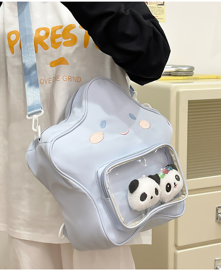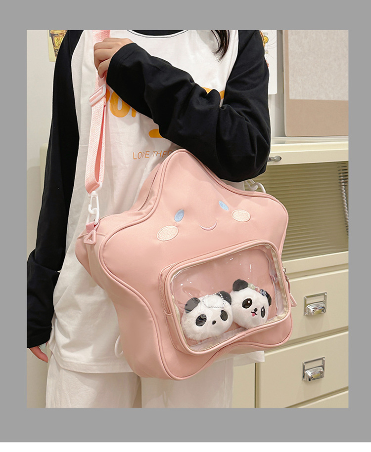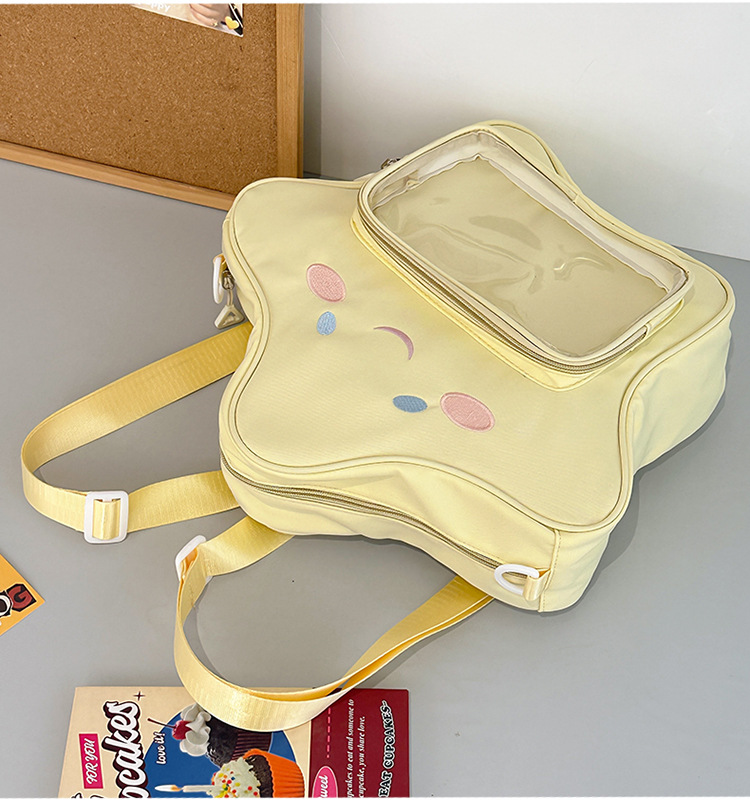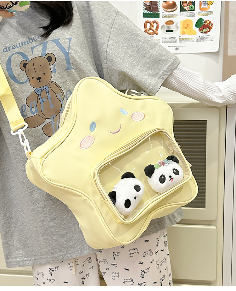 귀여운 별 만화 어깨 통증 가방 크로스 바디 백 달콤한 오각형 자수 스낵 대학생 재미있는 학교 가방