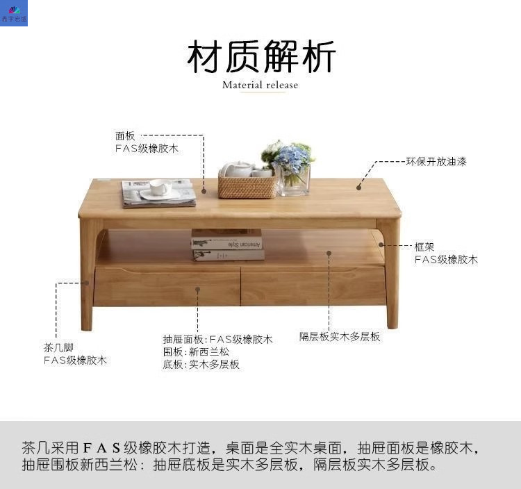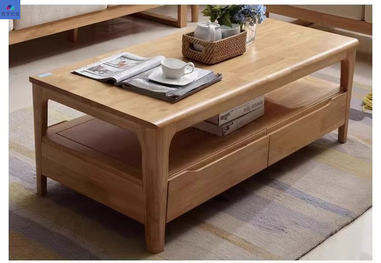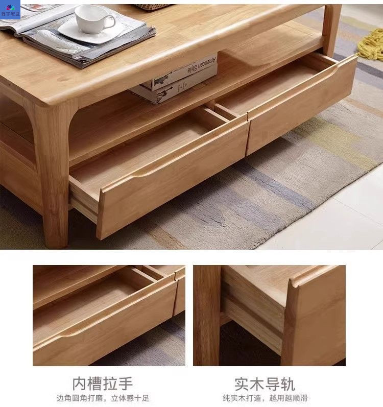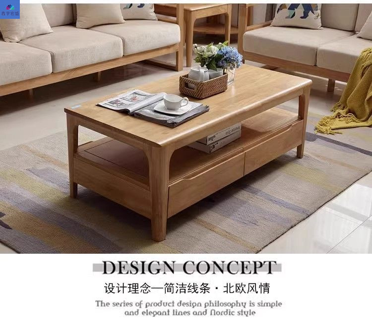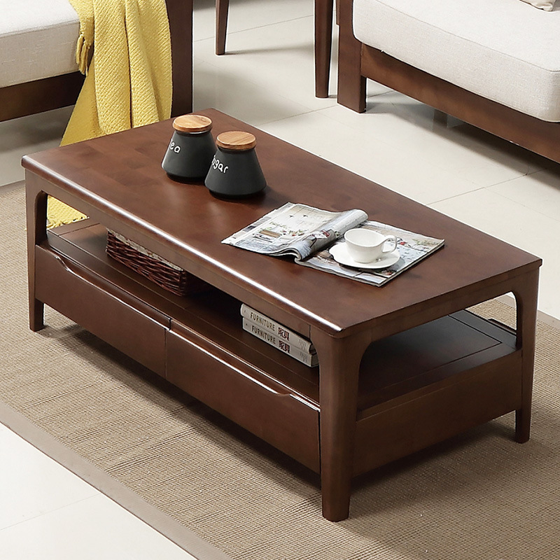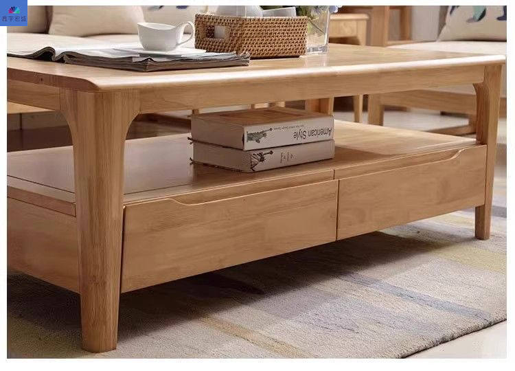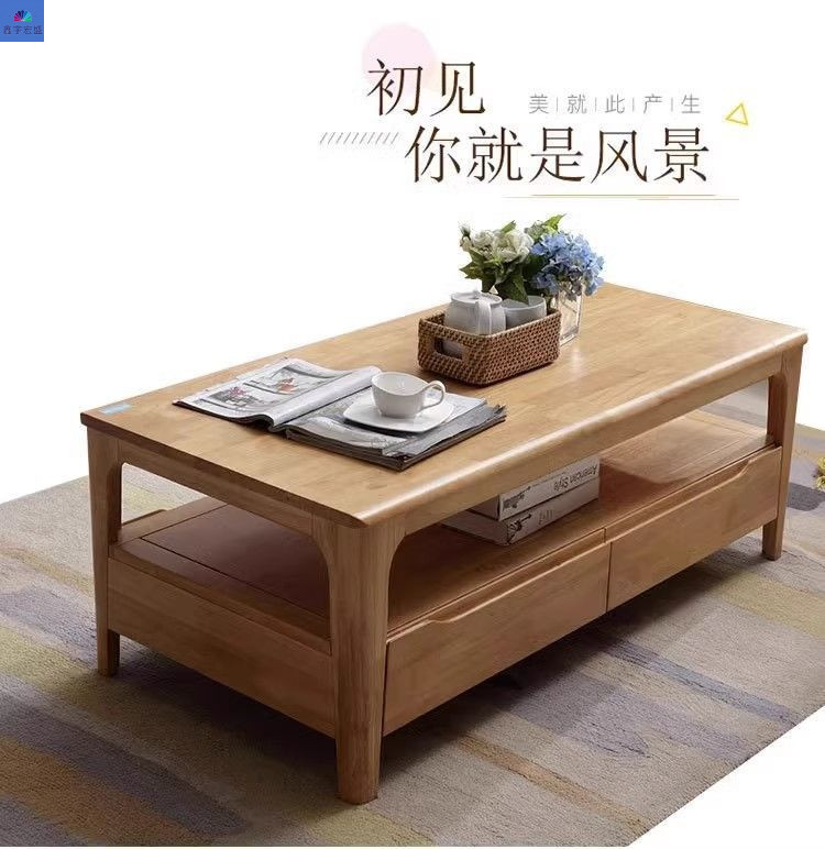 현대 단단한 나무 커피 테이블 거실 작은 아파트 가구 직사각형 노르딕 차 테이블 나무 리본 서랍스토어 가기