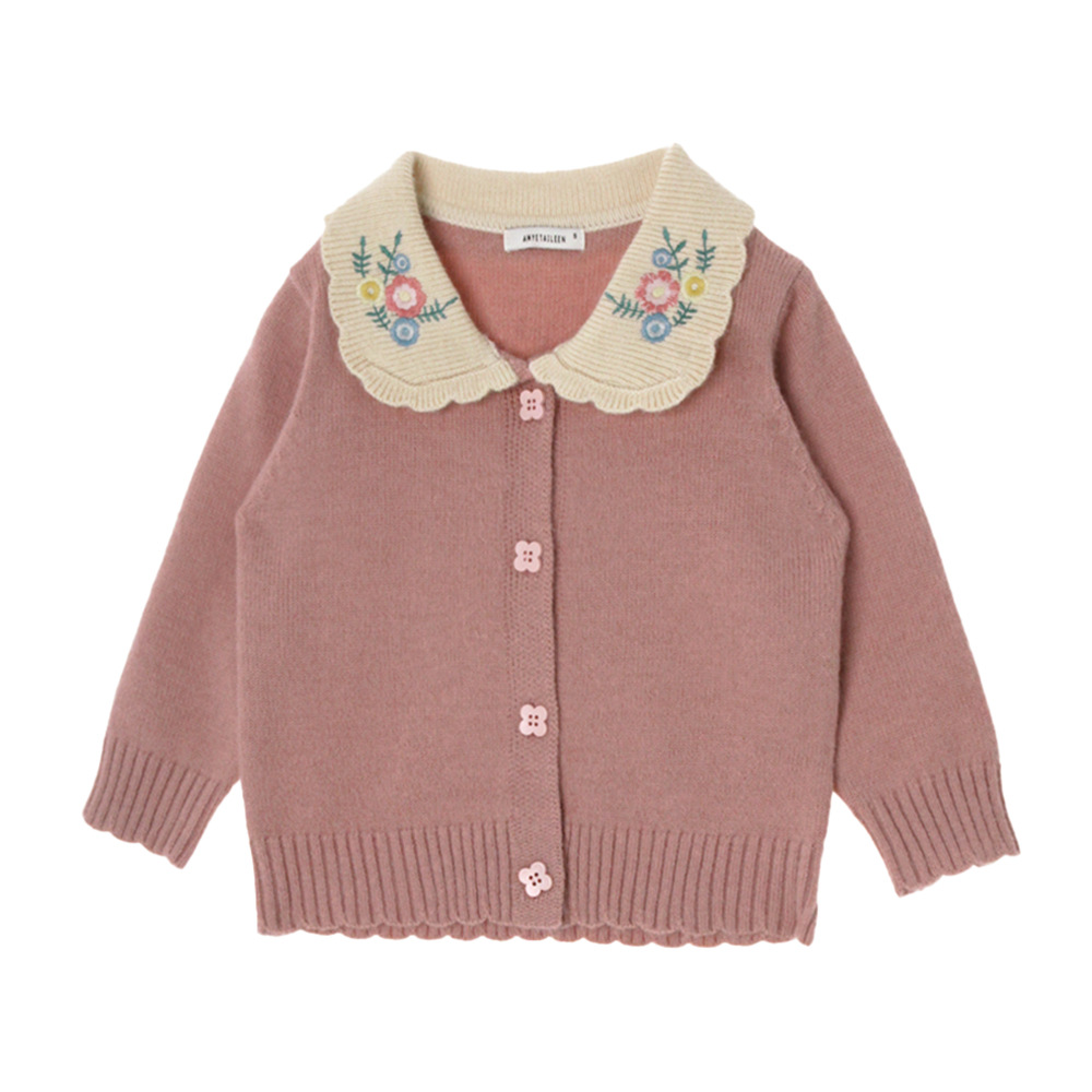 한국 폭발 소녀 수 놓은 연꽃 잎 칼라 스웨터 25 년 새 인형 칼라 카디건 자수 카디건 스쿨웨어