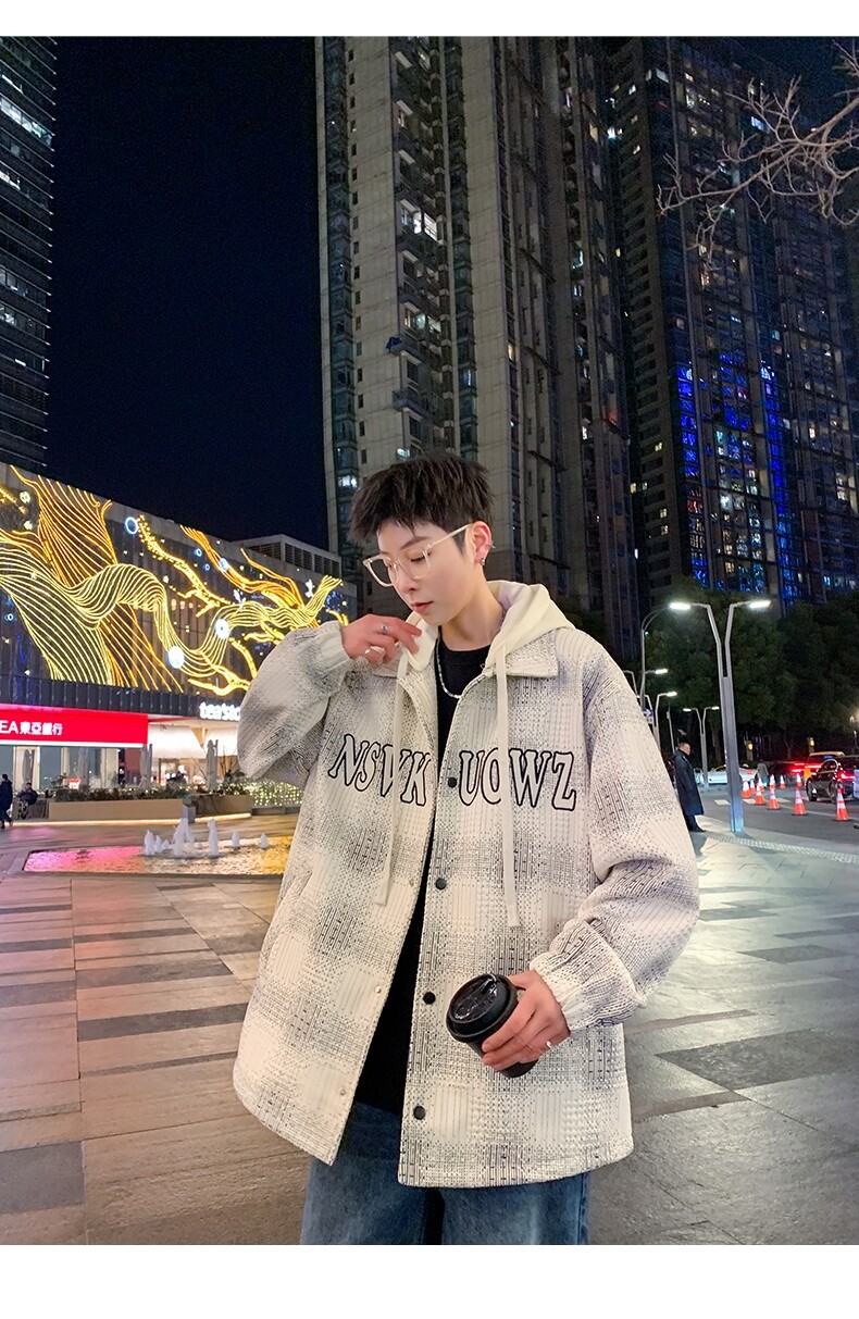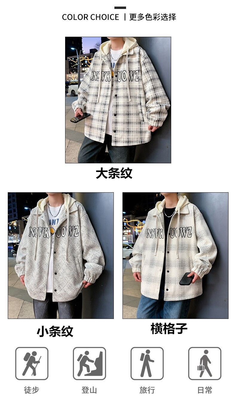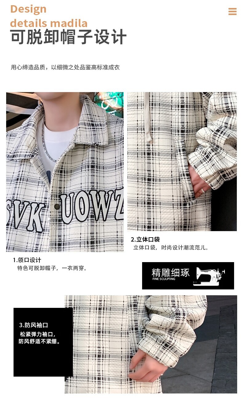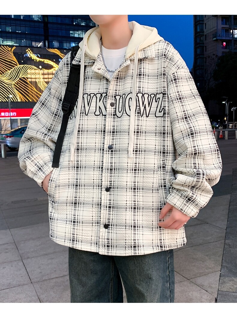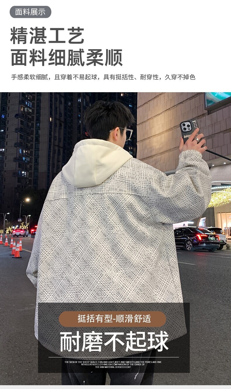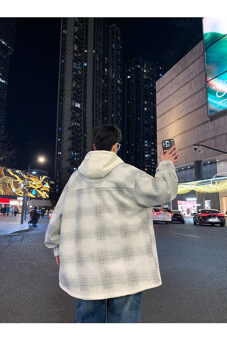 가짜 투피스 후드 재킷 남자의 봄과 가을 2025 새로운 격자 무늬 재킷 남자의 유행 브랜드 청소년 홍콩 스타일 옷스토어 가기