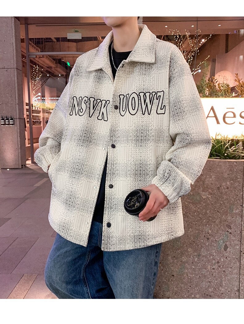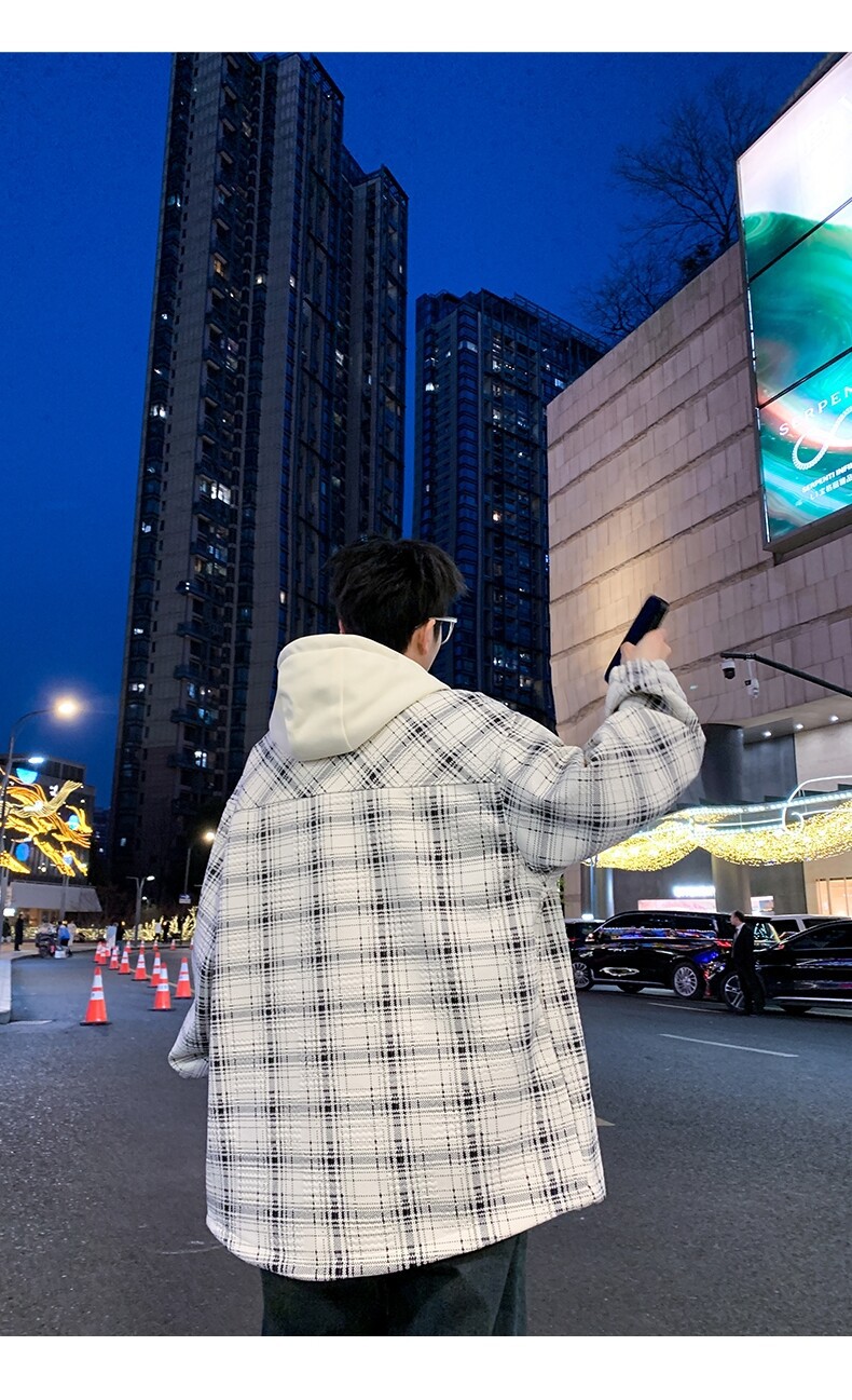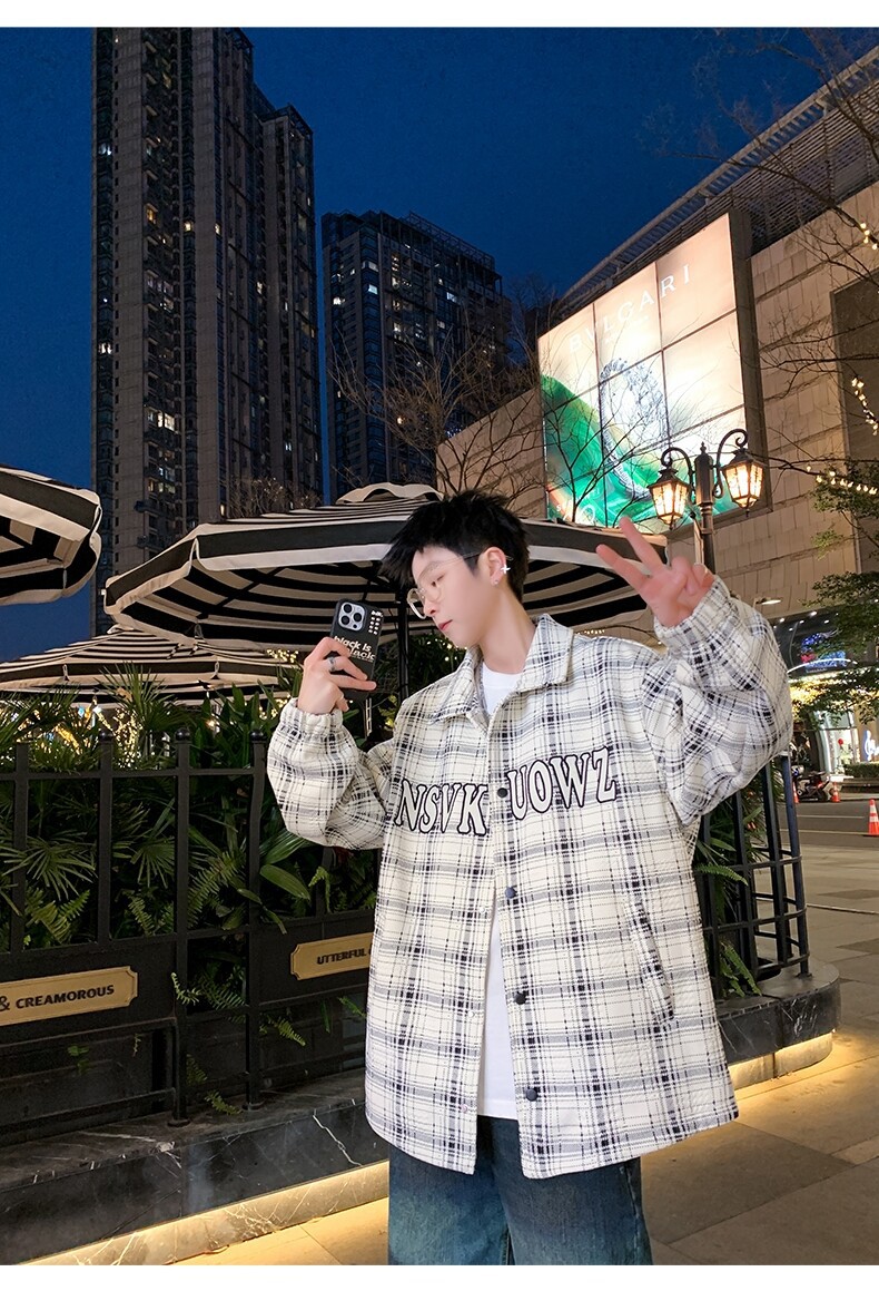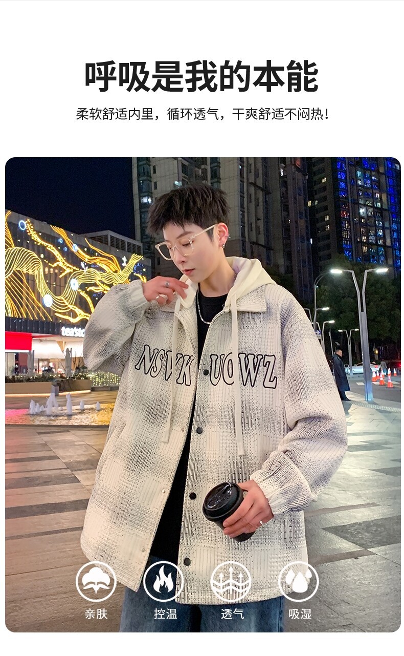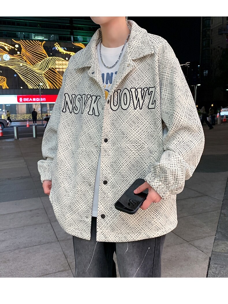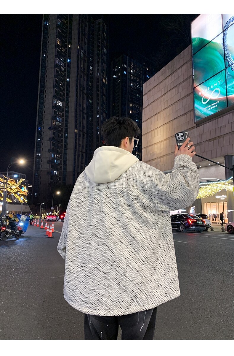 가짜 투피스 후드 재킷 남자의 봄과 가을 2025 새로운 격자 무늬 재킷 남자의 유행 브랜드 청소년 홍콩 스타일 옷스토어 가기