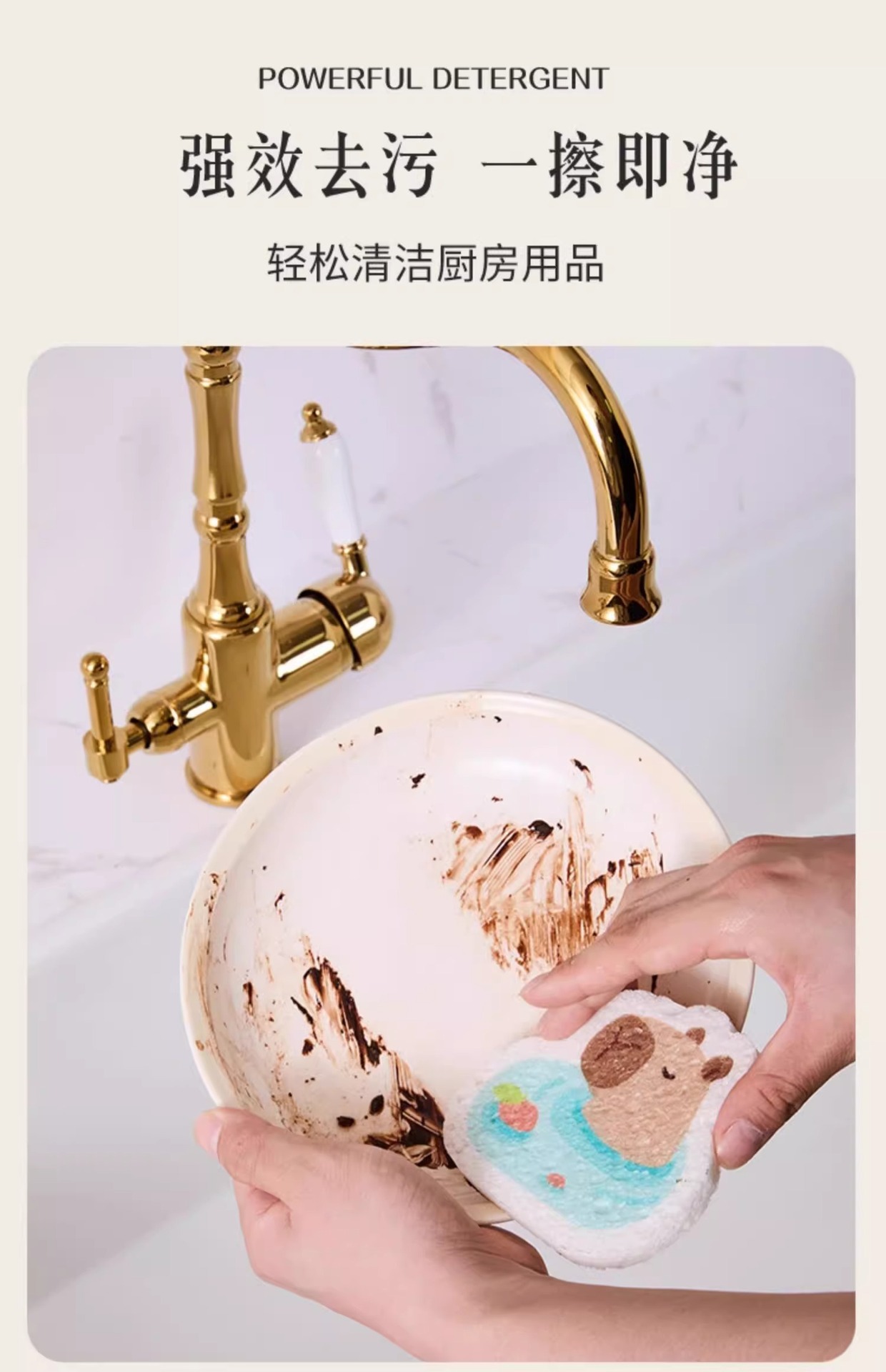 웨딩 축제 주방 목재 펄프 식기 세척 수건 압축 스폰지 흡수 세척 패드 기름없는 천연 그릇 브러시 유물스토어 가기