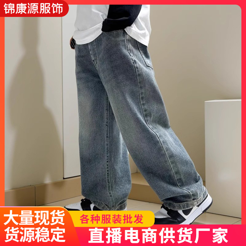 봄과 가을 아동복 소년 청바지 가을 어린이 바지 봄과 가을 2024 새로운 복고풍 서양식 스트레이트 바지스토어 가기