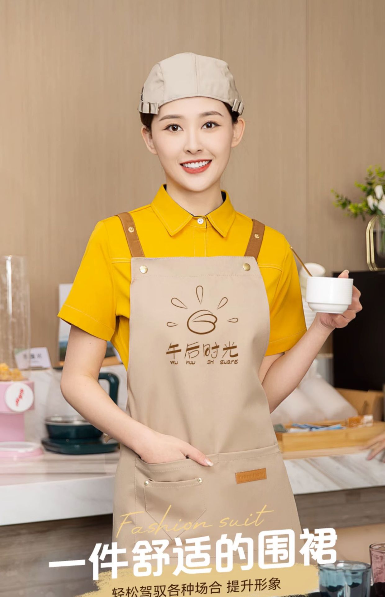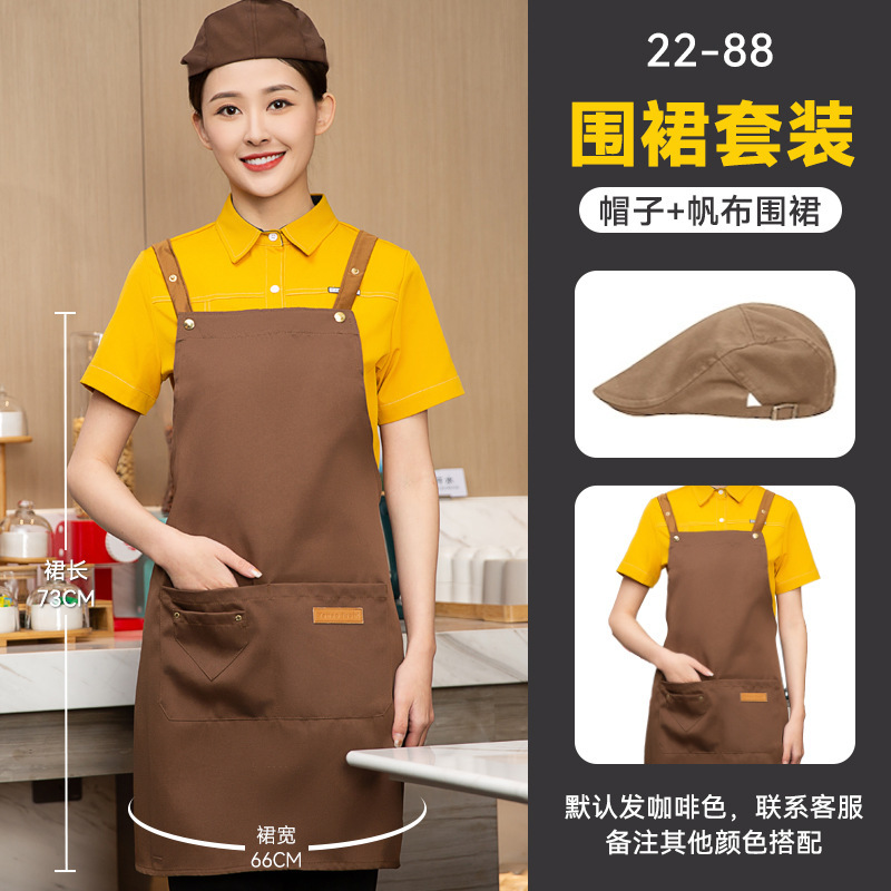 • XS22-88 어깨끈 방수 앞치마 커피 + 브라운 조절 베레모