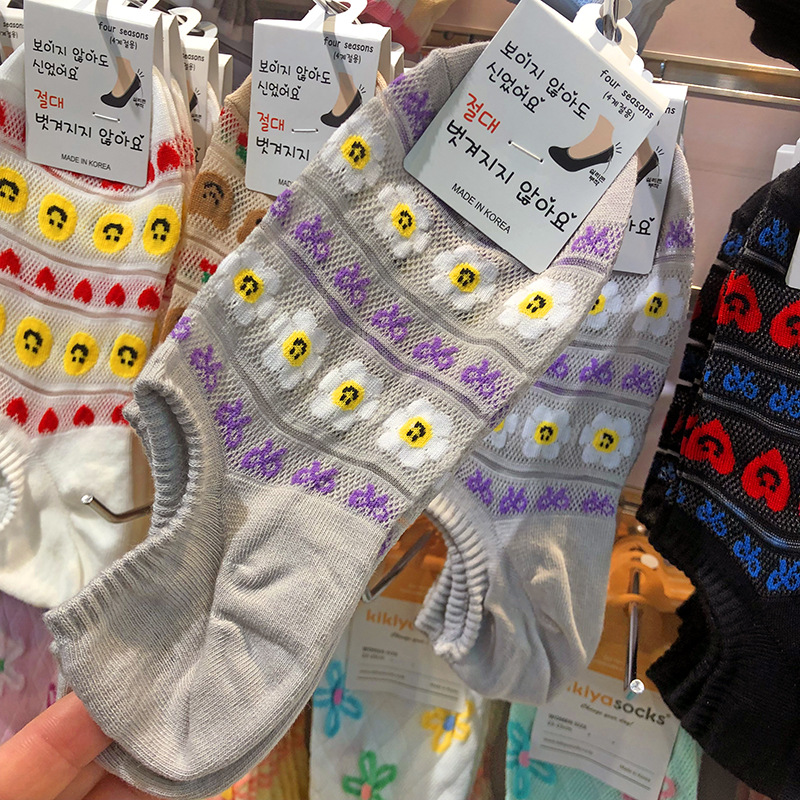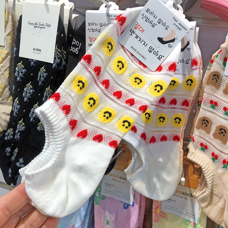 한국 glalalane 보트 양말 봄 및 여름 중공 메쉬 보이지 않는 양말 소녀 스마일리 베어 안티 오프 얇은 면 양말스토어 가기