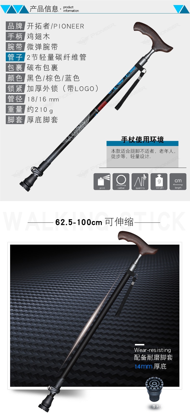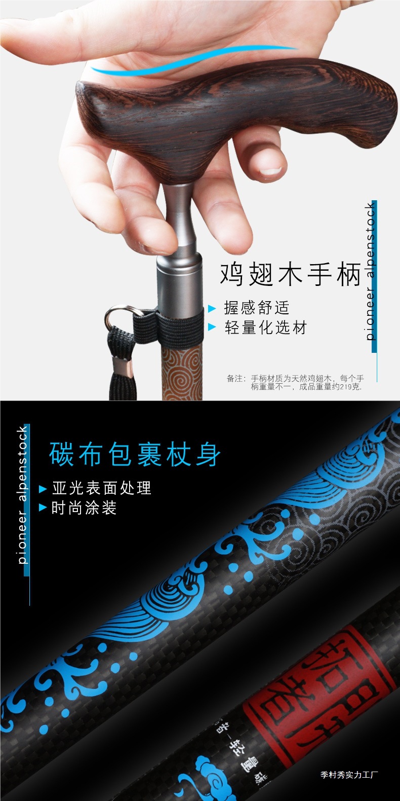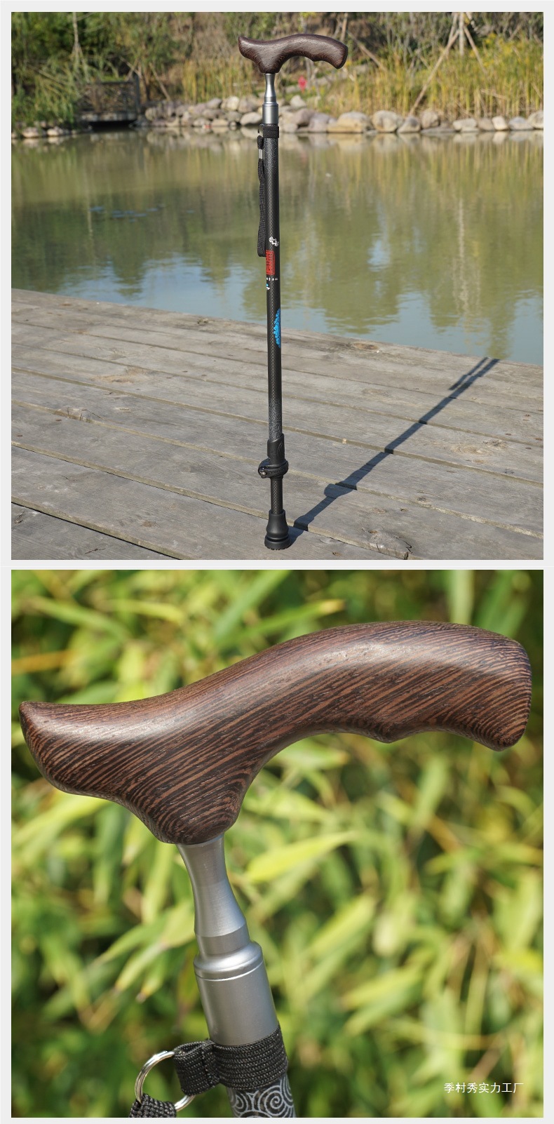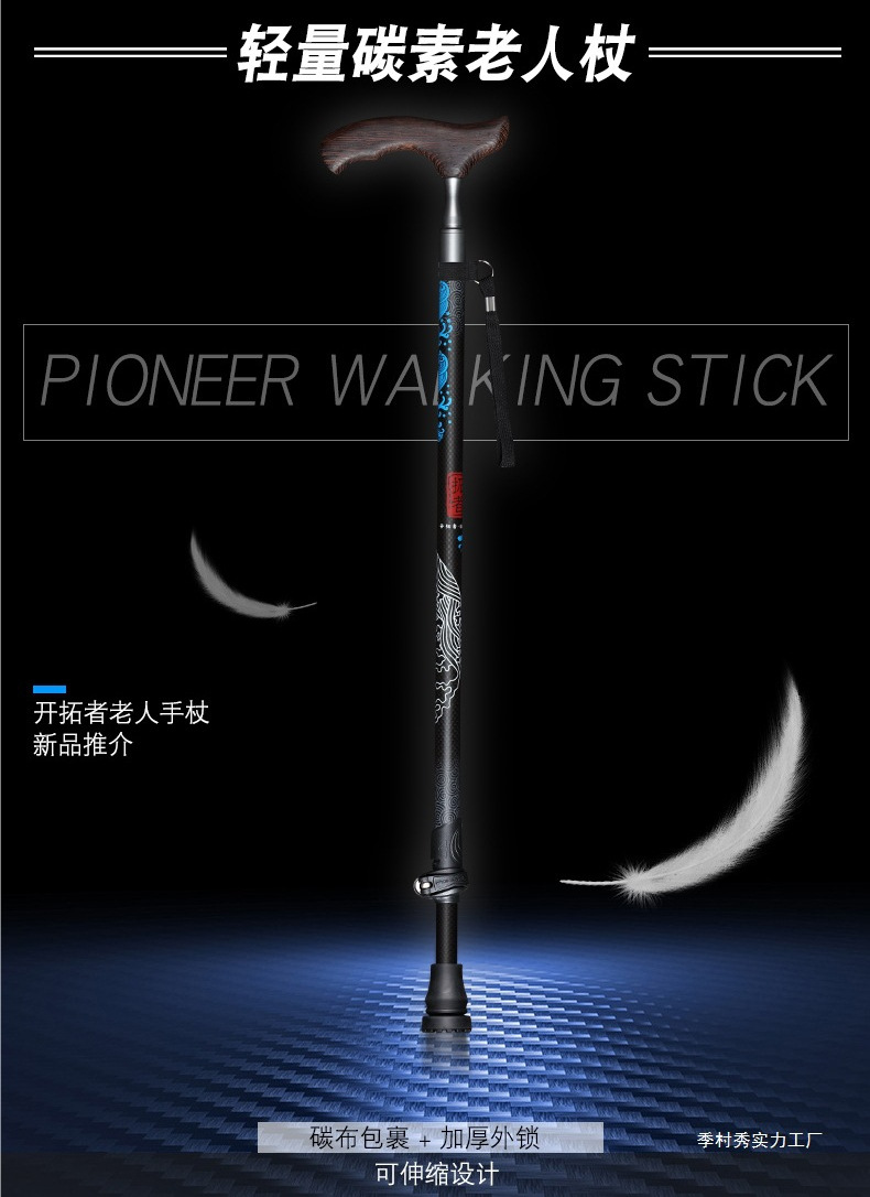 노인을위한 선구자 탄소 섬유 워킹 스틱 노인 단단한 나무 손잡이 경량 탄소 고급 워킹 스틱 Ji Cun스토어 가기