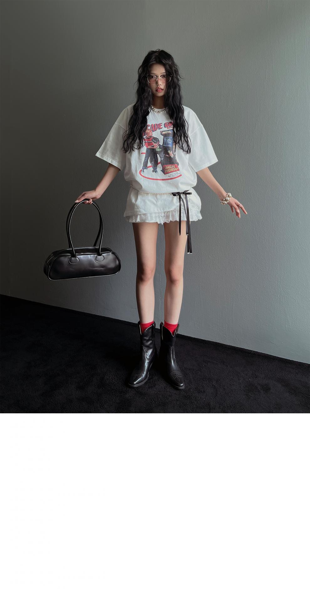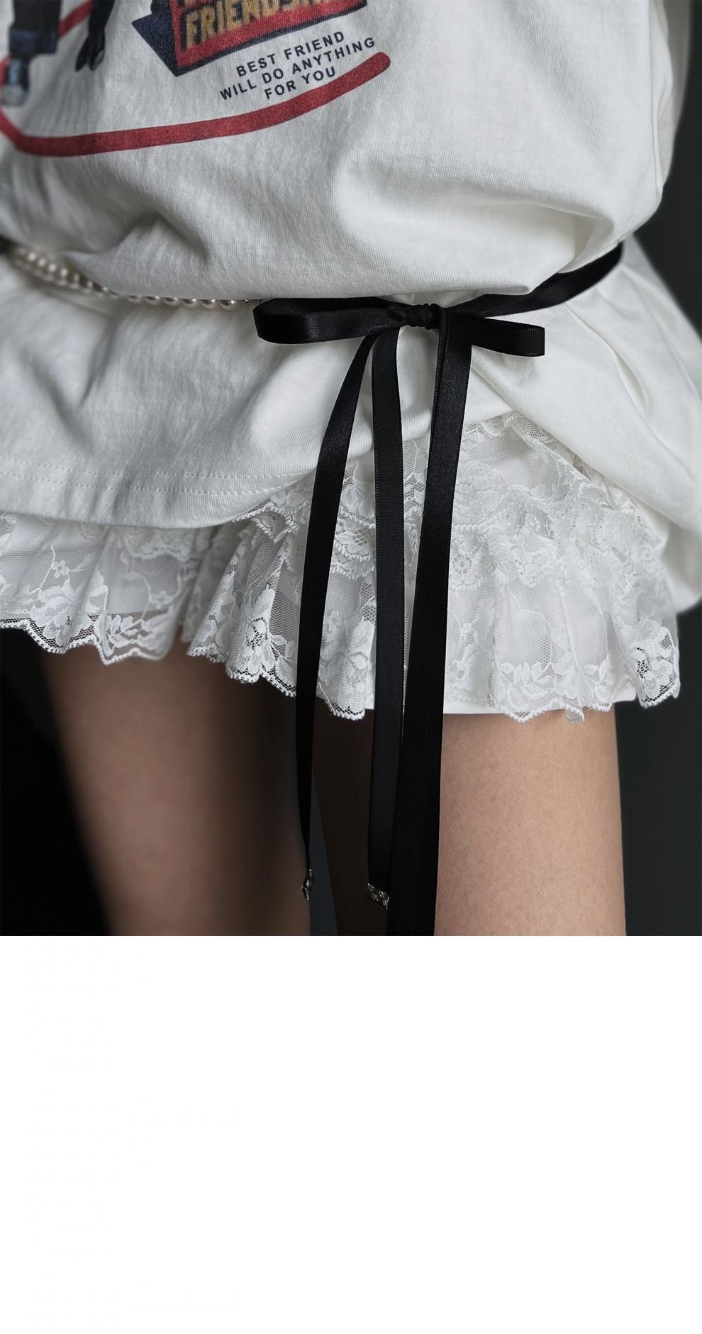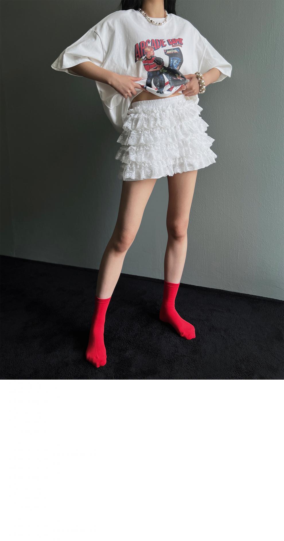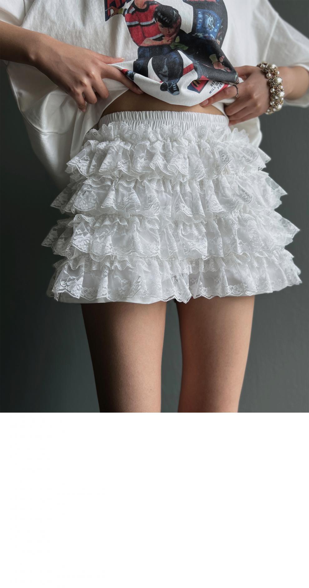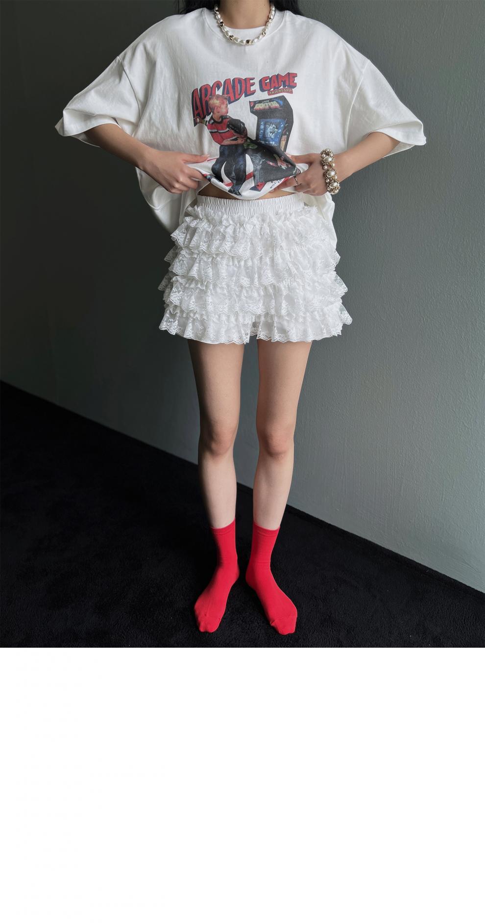한국 여성 고급 동대문 캐주얼 라운드넥 풀오버 탑 + 레이스 스커트