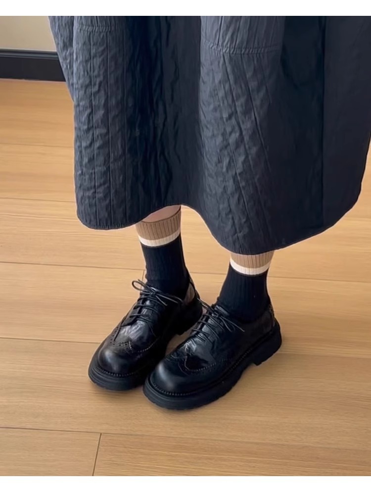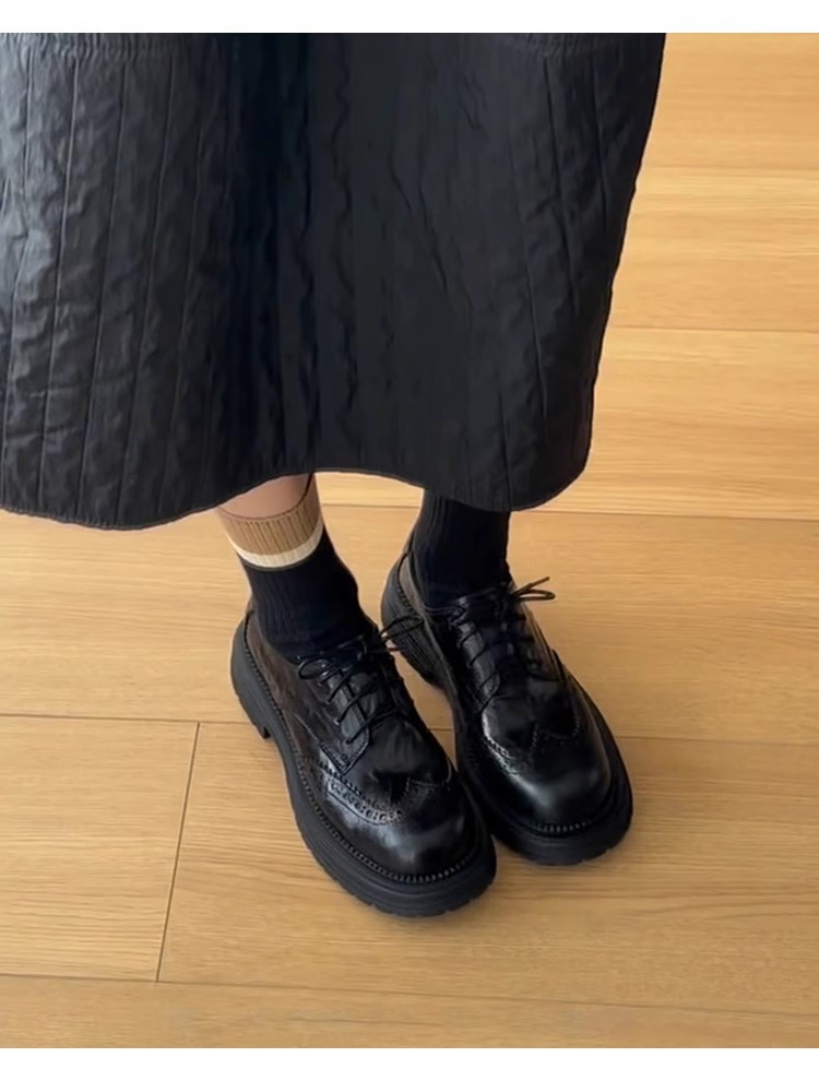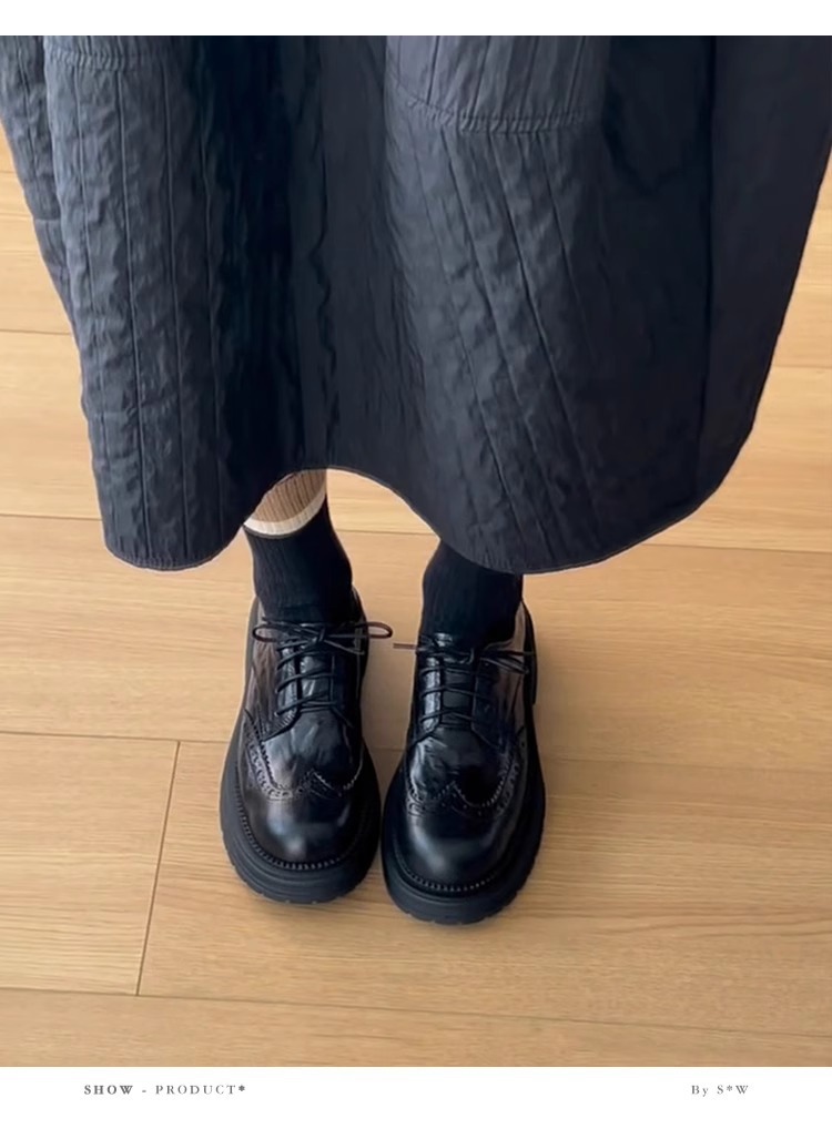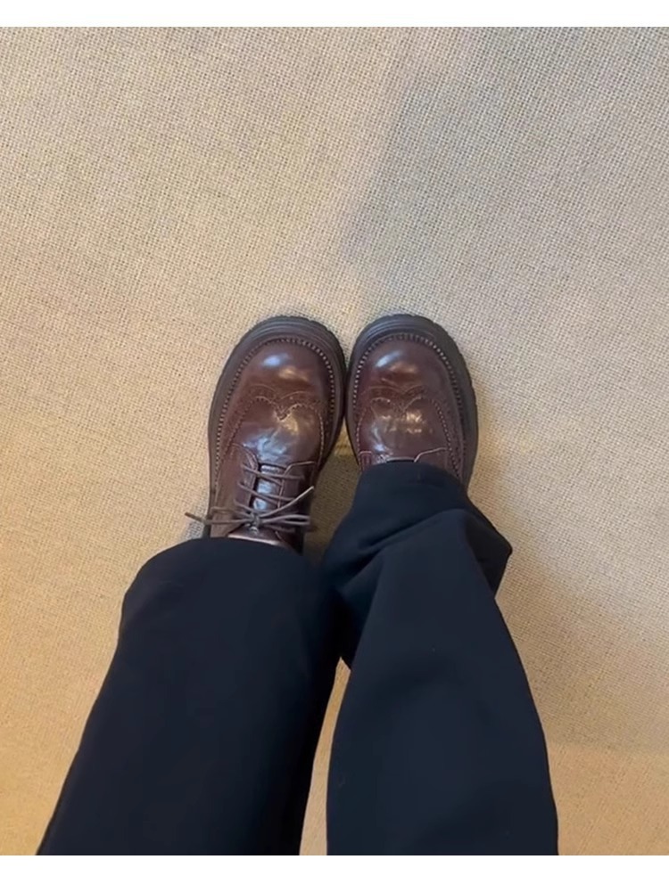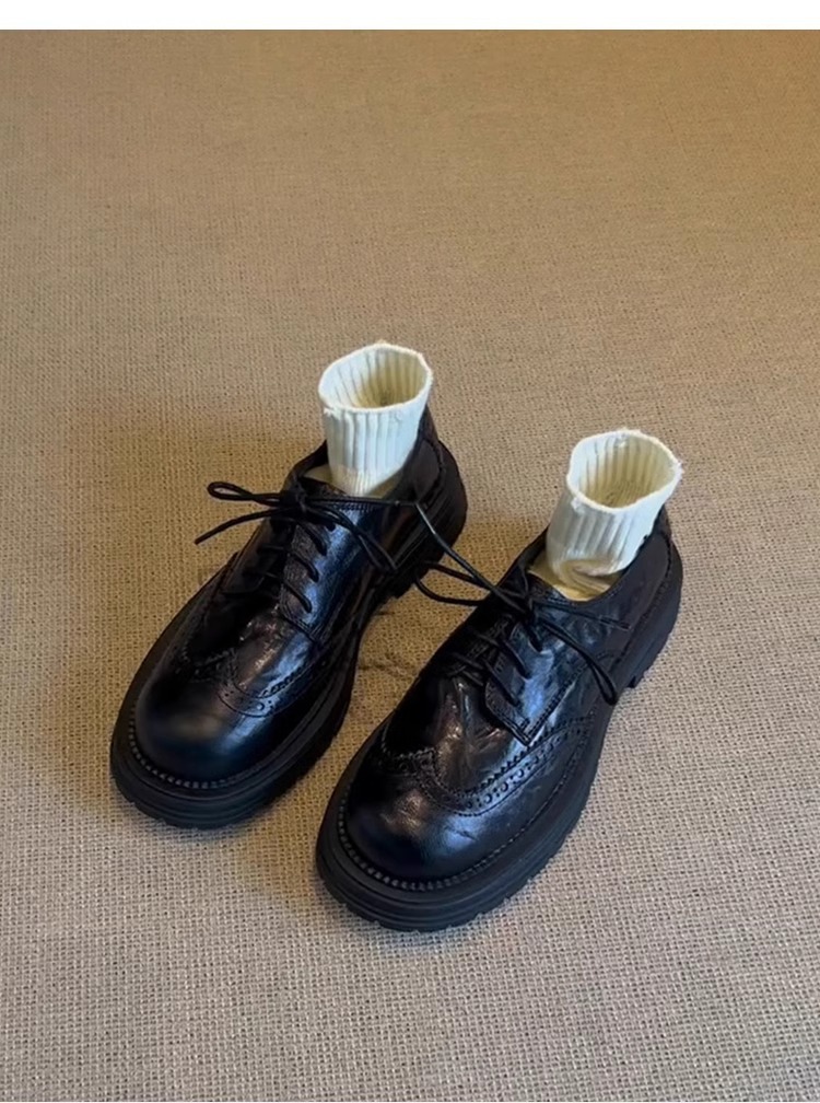 양가죽 버전 ~ 레트로 블랙 고급 브로그 작은 가죽 신발 여성용 레이스 업 두꺼운 밑창 가죽 로퍼 싱글 슈즈스토어 가기